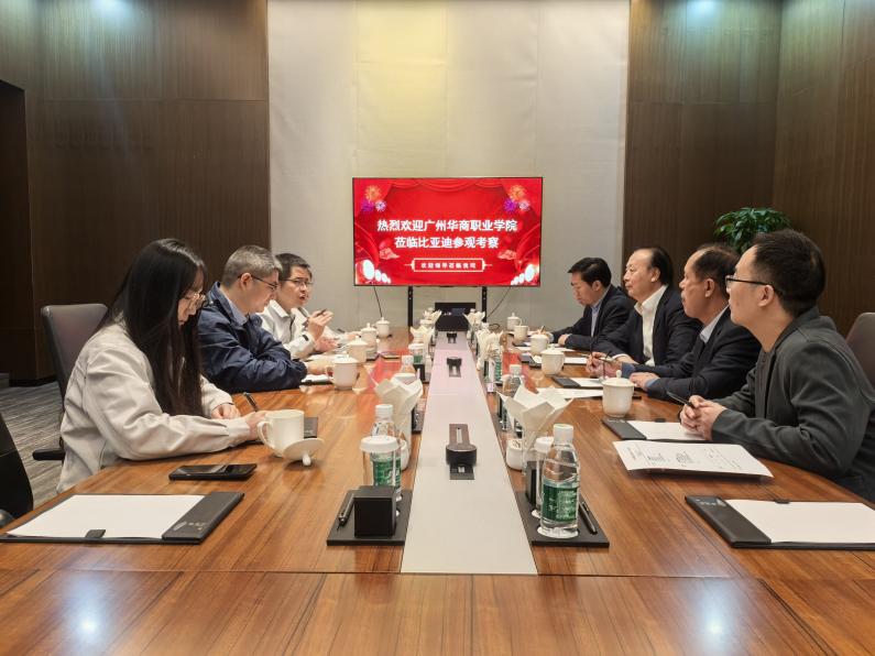 1月15日,华商教育集团董事长廖榕就,2025新澳门免费原料网副校长黄俊斌、赵永锋,产教融合办公室主任王克明及智能制造与汽车学院院长祝常红一行到比亚迪股份有限公司考察,并就新能源汽车产业学院建设事宜展开洽谈。比亚迪股份有限公司人力资源处人事招聘总监蒋平、华南人事总监张高辉等陪同。