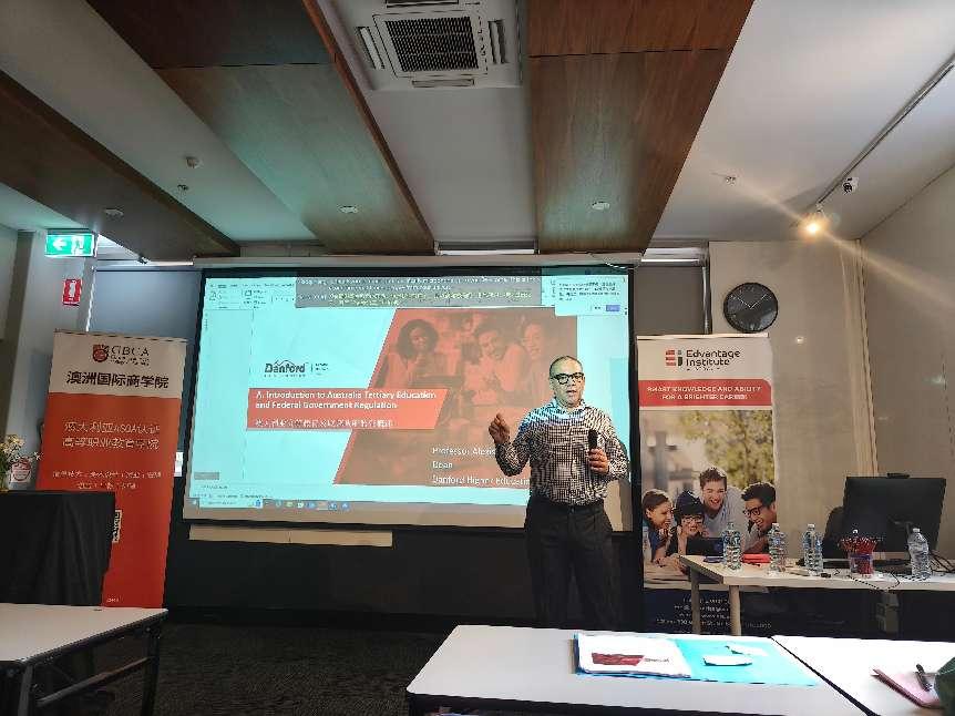 丹福德高等教育学院创始院长Alexis Esposto教授,以“澳大利亚高等教育及联邦政府监管概述”为题,全面介绍澳大利亚教育体系、学历资格框架(AQF),高等教育监管机构(TEQSA)、高等教育机构的注册与课程认证流程、跨国教育等方面的知识,提升了教师们国际化视野。
