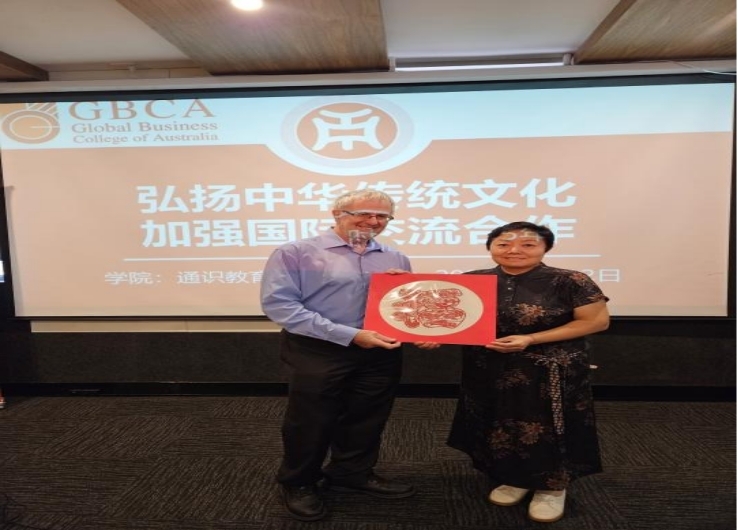 培训期间,我校通识教育中心代表向讲座嘉宾和澳洲国际商学院(GBCA)的外籍师生们赠送了由我校师生制作的剪纸作品,并介绍了剪纸的历史渊源、文化内涵和艺术特色,促进了中澳文化的交流。通识教育中心杨俊萍主任还表达了在春节期间赠送剪纸作品的美好祝愿。活动现场气氛热烈融洽,外籍师生积极参与,亲身感受了剪纸艺术和中国文化的独特魅力。