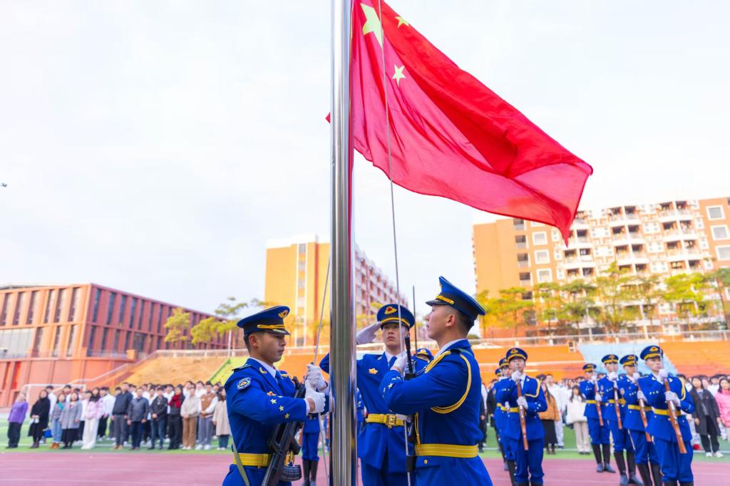 2月24日清晨,当第一缕阳光洒在校园的土地上,广州校区东区田径场和江门校区运动田径场迎来了一场庄严肃穆且意义非凡的活动——2025年春季学期两校区升旗仪式。学校副校长孙虎、全体学工队伍以及学生代表们整齐排列,以饱满的精神状态等待着神圣时刻的到来。