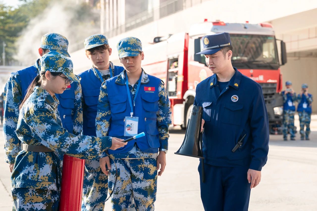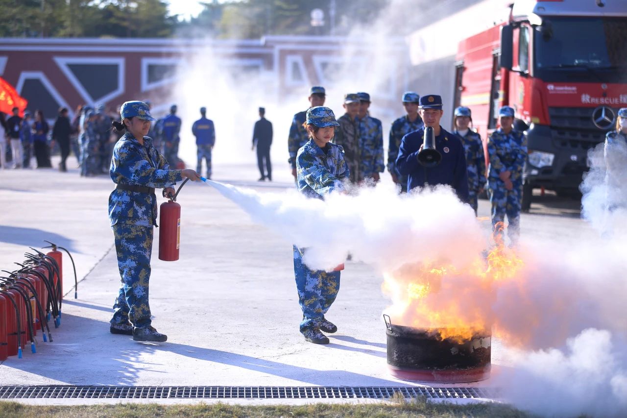 消防员讲解消防安全知识,灭火器的正确使用方式,防毒面具的正确佩戴方式等。新生们对消防安全知识、器材使用,如何应急逃生等,有了更进一步的了解。
