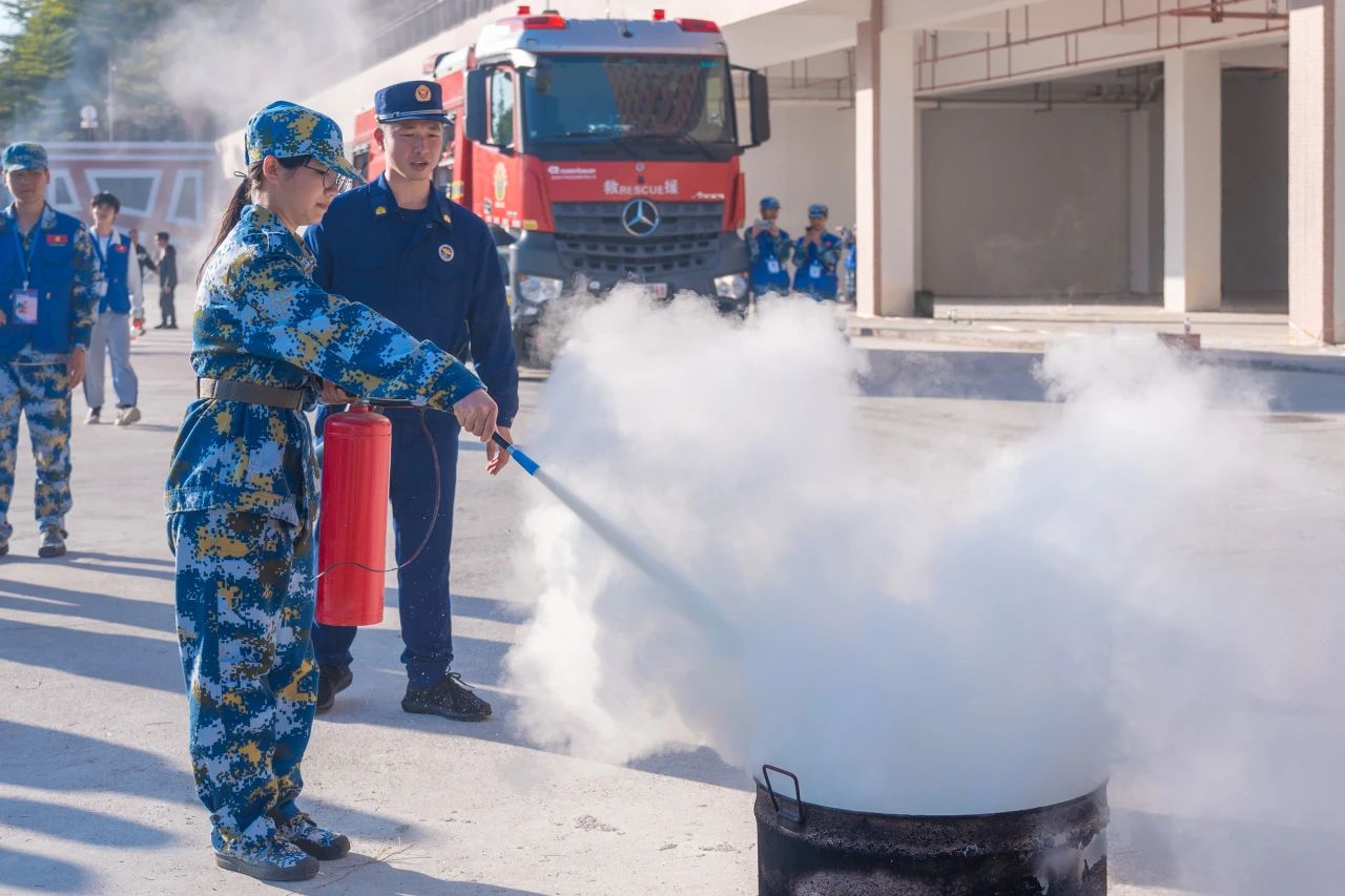 2024级新生在东区田径运动场,体验了逃生屋。在创科楼下体验了灭火器使用,消防水枪的操作等。理论与实践操作相结合,新生们纷纷表示收获颇丰。