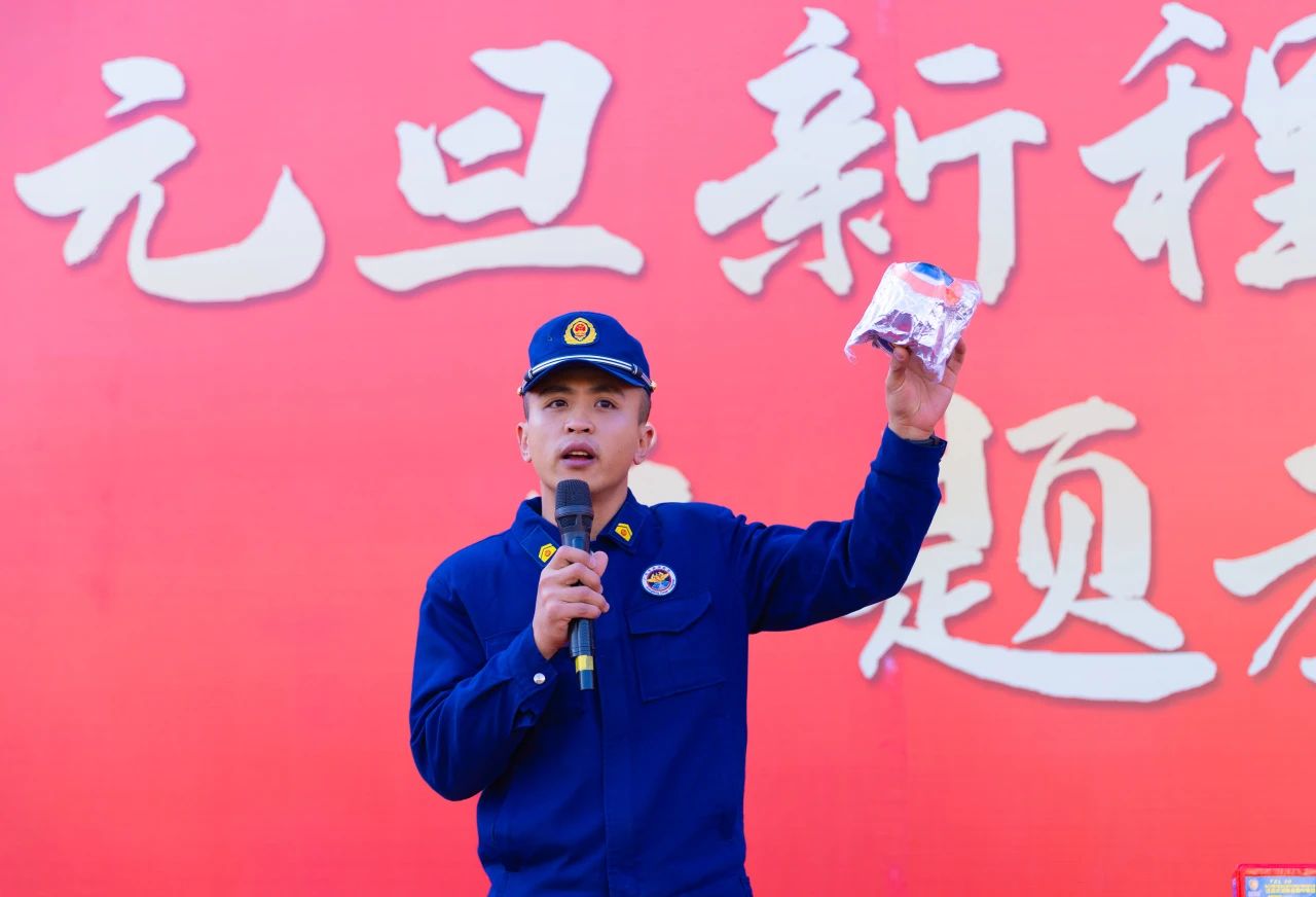 消防员讲解灭火器、防毒面具的正确使用