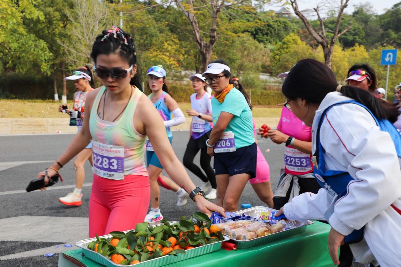 看!终点线宛如一道胜利的曙光而志愿者们就伫立其外,揣着热忱与期待,紧握着荣誉的象征--奖牌以及装满温暖的完赛物资。当选手们拼尽全力冲过终点的那一刻,志愿者们迅速且温柔地迎上前,庄重地为选手戴上那熠熠生辉的奖牌。接着递上物资用最温暖的声音说道“辛苦啦,恭喜完赛!”
