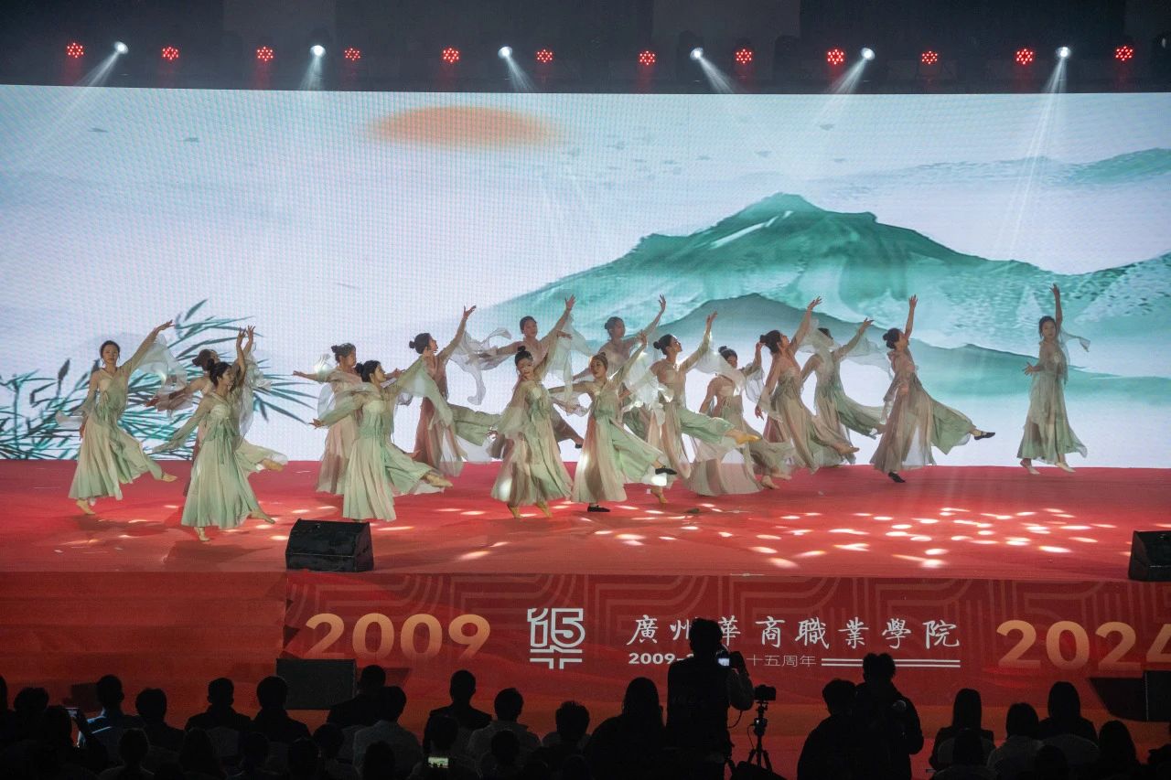 校艺术团舞蹈队的《盛世欢歌》用舞蹈展现了学校的辉煌历程和美好未来。