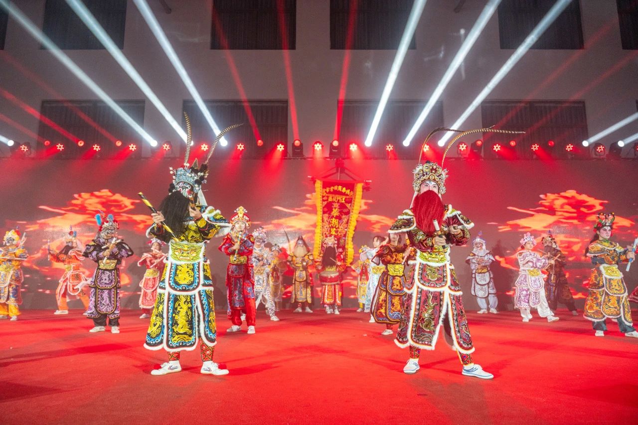 潮汕英歌舞表演由华潮英歌队演绎,其独特的表演形式和深厚的文化底蕴,展示了潮汕地区丰富的非物质文化遗产。