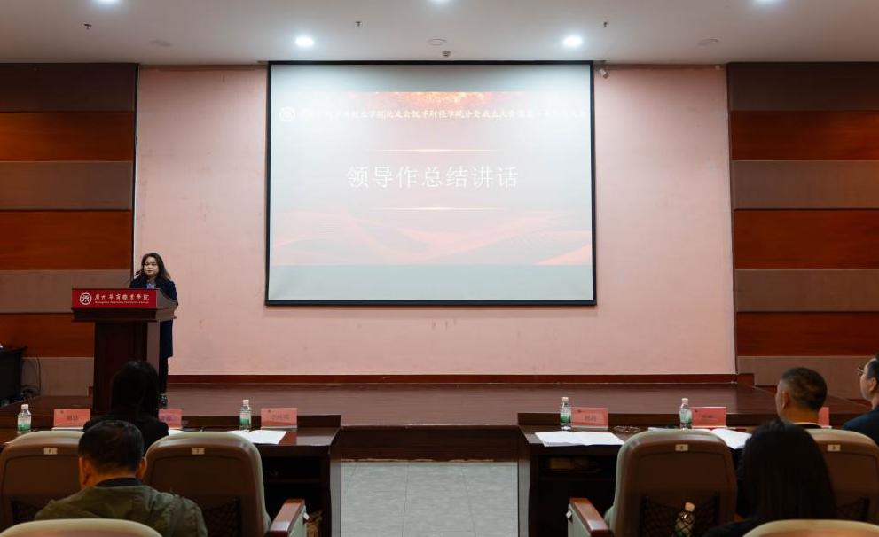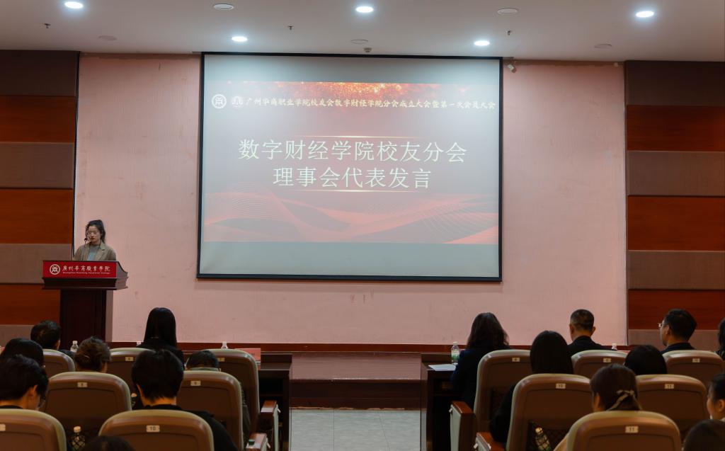 杨玲作总结讲话。她向校友们介绍了学校目前的在校生规模、专业设置、学科建设及江门校区的建设情况等发展现状,总结了学校近年来在教育领域取得的显著成就。她指出,数字财经学院校友毕业后扎根于粤港澳大湾区的各行各业发展,为广东省乃至全国的经济社会进步做出了积极贡献。她期望校友分会能够凝聚并引导会员们持续进步,积极促进校友间的交流以及校友与母校之间的紧密联系,使校友会成为我们共同的精神家园,同时集结校友资源,助力学校的持续发展和进步。