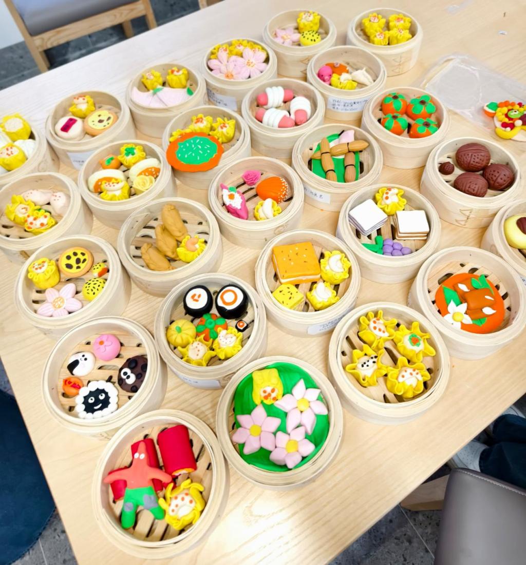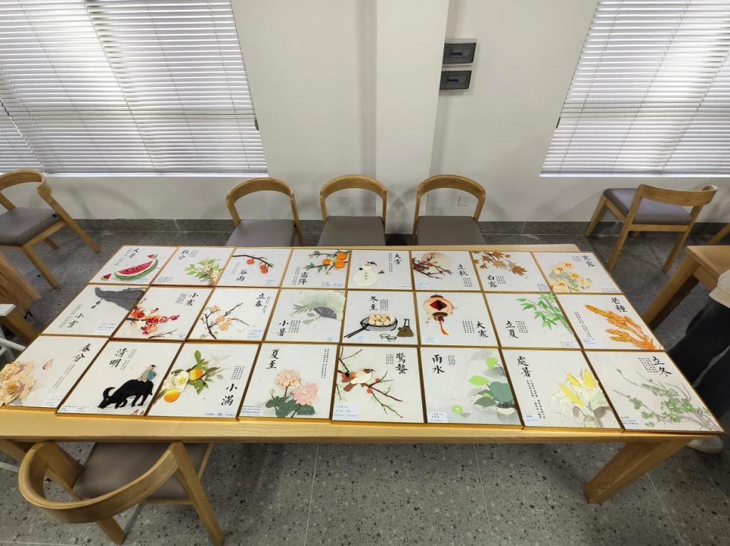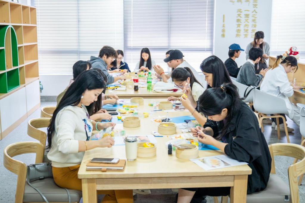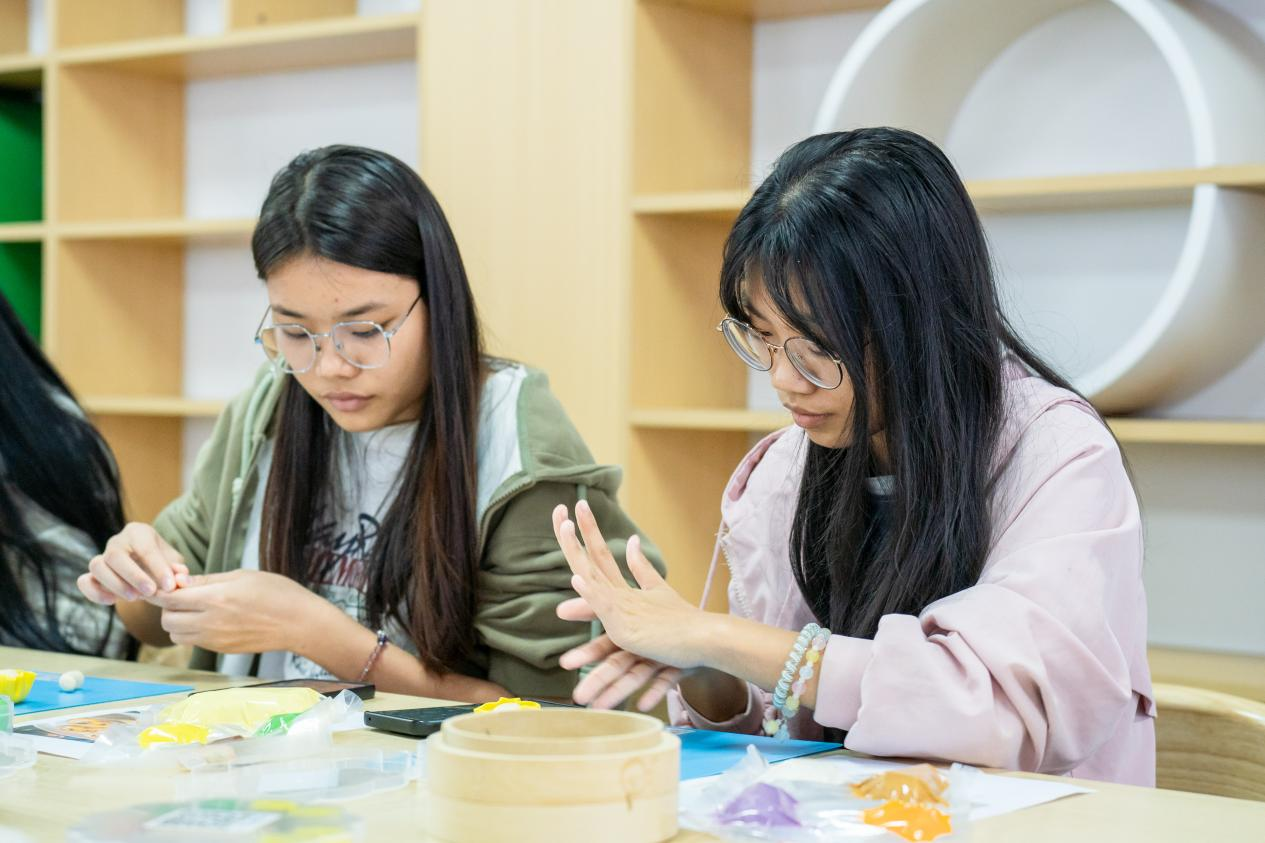 师生们围坐一旁,全神贯注地观摩学习,学生们不时提出问题与袁女士互动交流。在袁女士的悉心指导下,师生们纷纷动手尝试,全神贯注地投入到面塑创作中。他们轻拢慢捻、细致入微,用灵巧的双手塑造出一幅幅生动形象的“美食”系列与“二十四节气”系列面塑作品。尽管手法略显生疏,但那份对面塑非遗文化的热情与专注溢于言表,活动现场充斥着浓烈的工匠精神。这些作品姿态各异、精彩纷呈,充分展示了师生们对面塑非遗文化的热爱与传承,也体现了非遗传承人的深远影响与独特魅力。