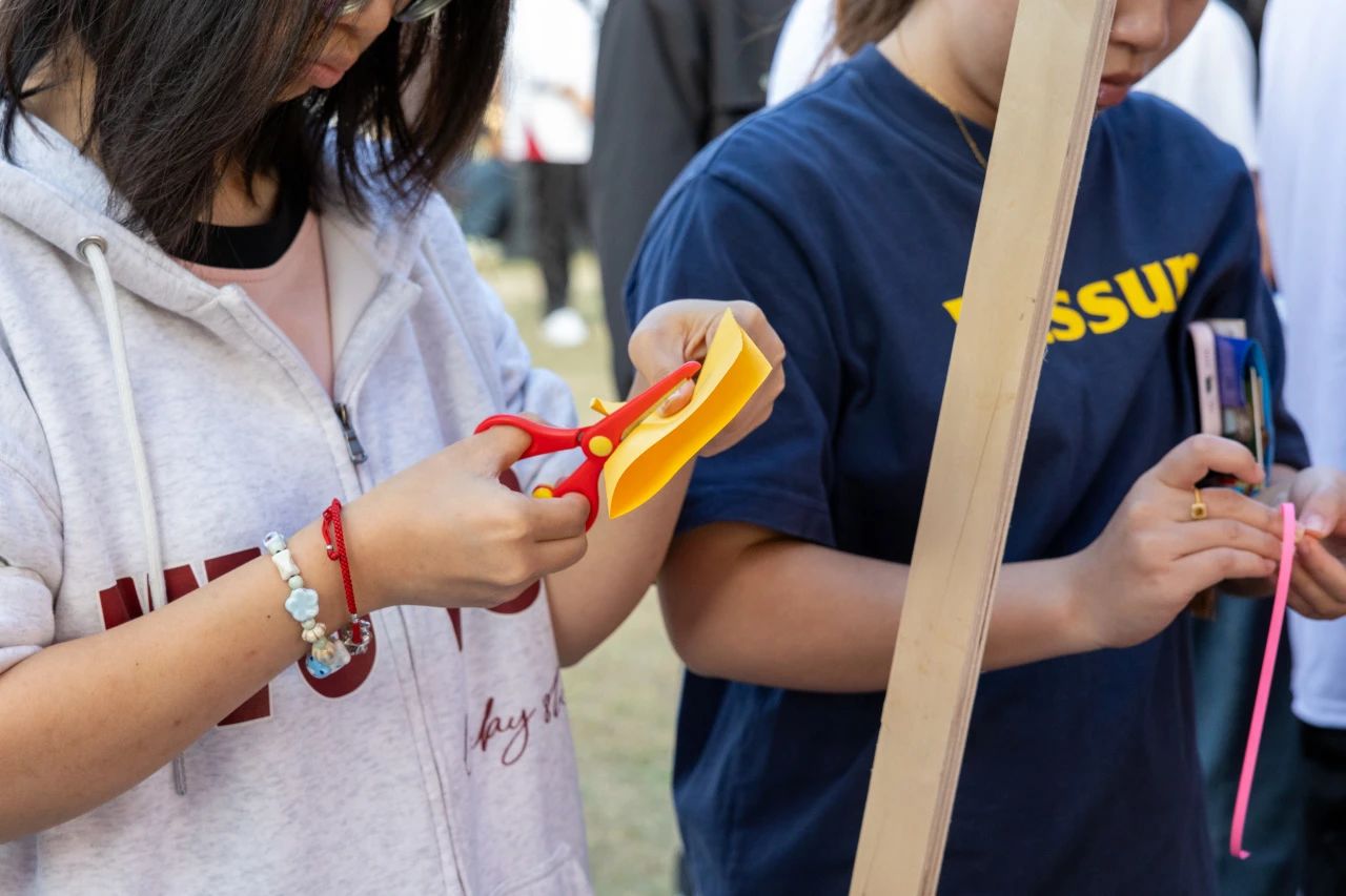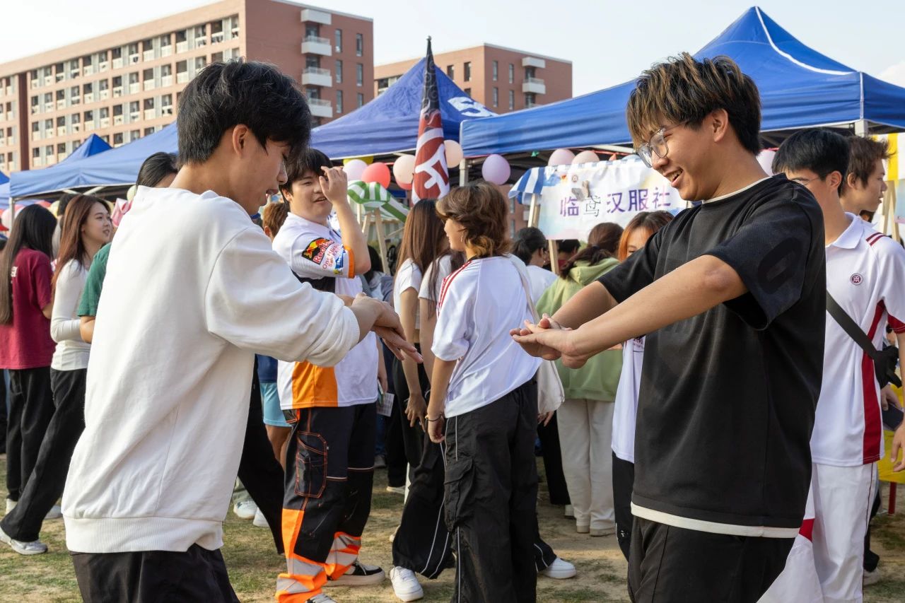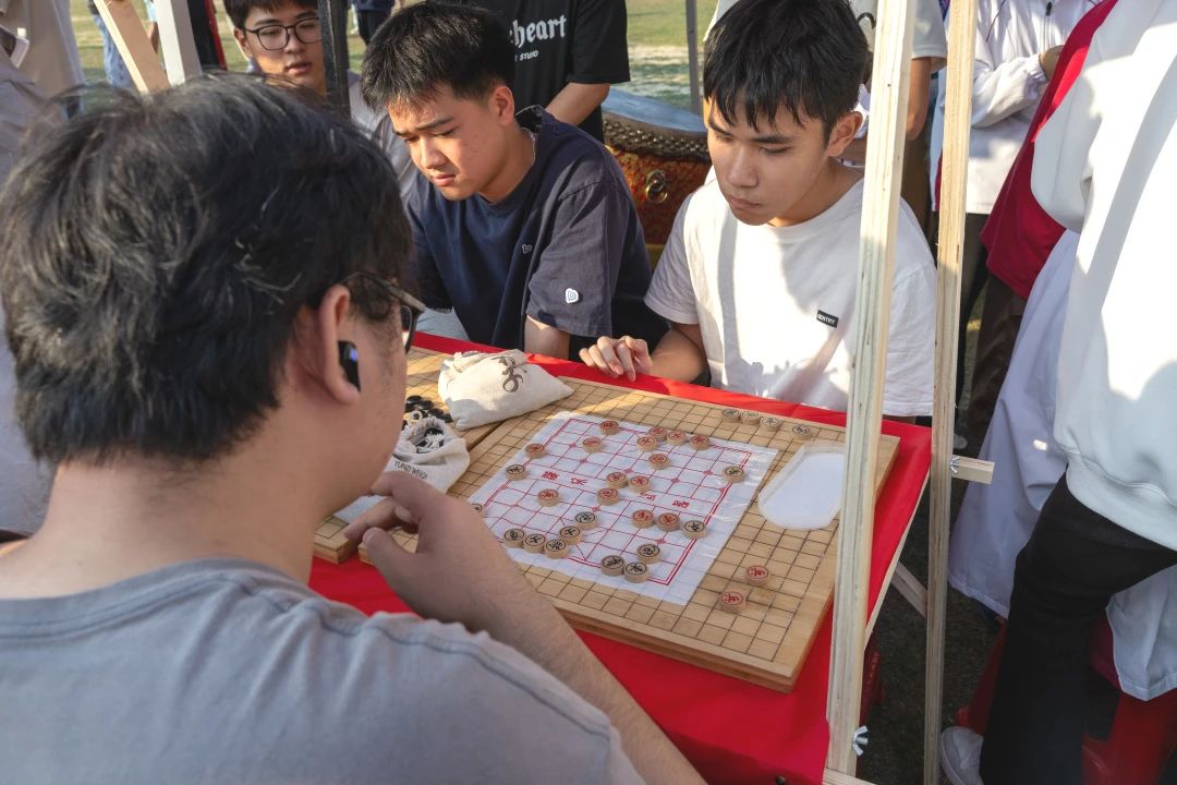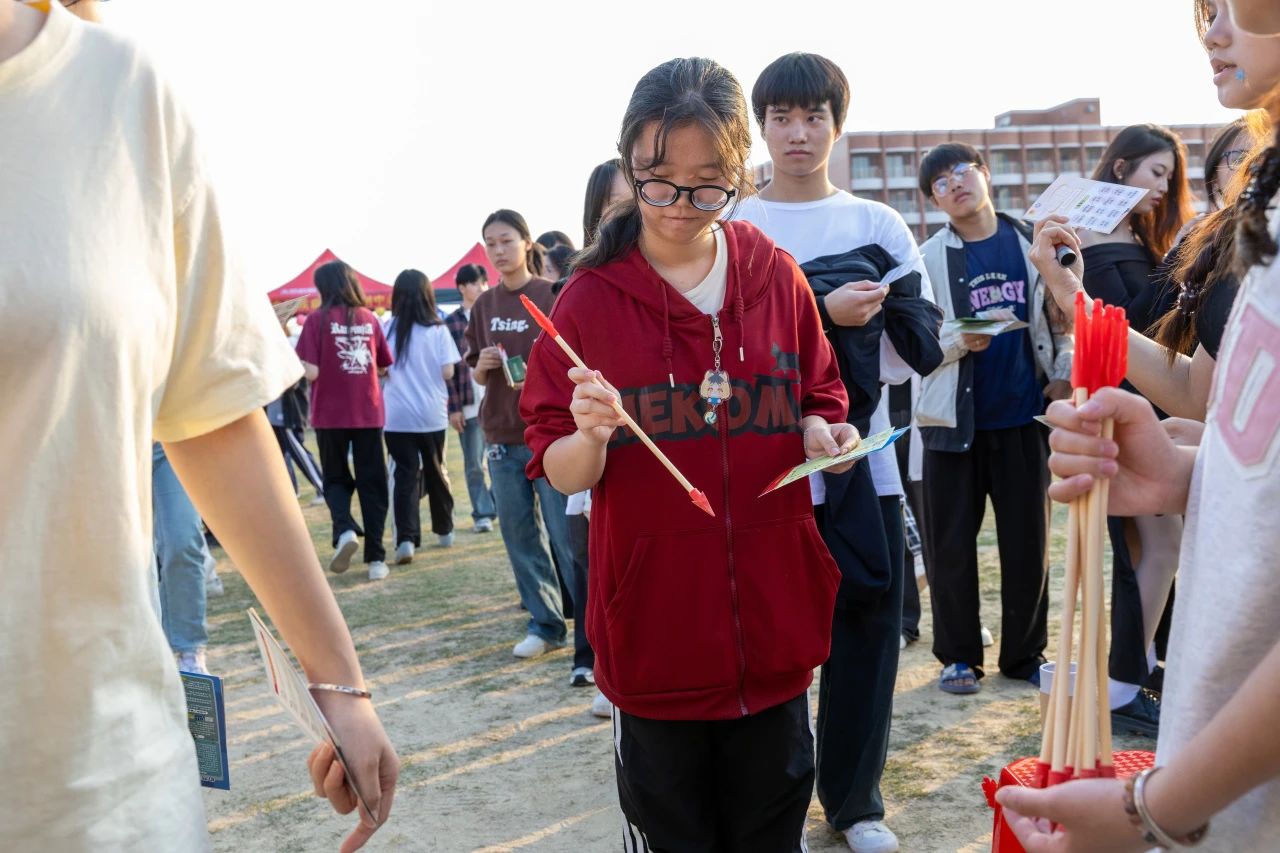 学生社团心连心,摆摊有序齐配合,摊位不大,趣味无限,知识在游戏中传播。