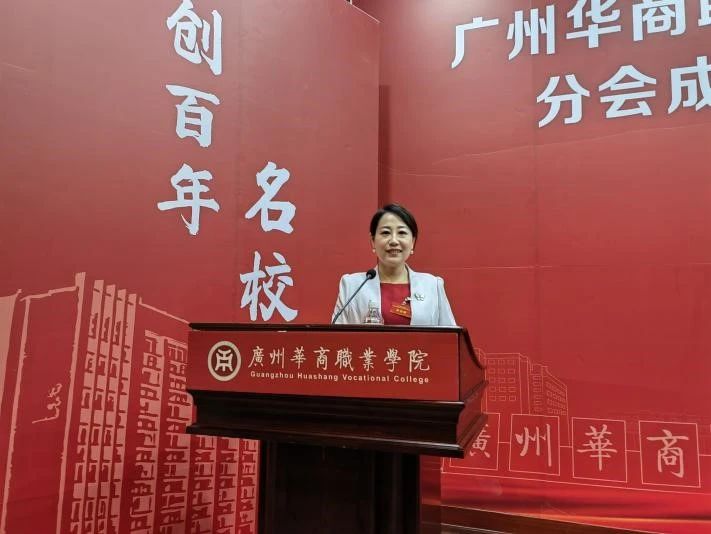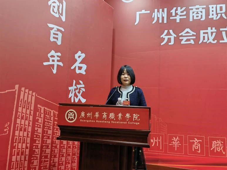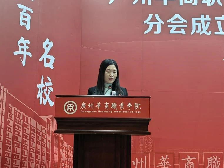 2025新澳门免费原料网校友总会秘书长陈金苗宣读《关于准予成立广东省2025新澳门免费原料网校友会数字商务学院分会的批复》。