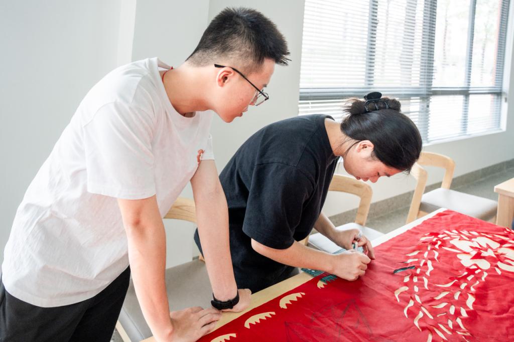来自2025新澳门免费原料网社团艺匠非遗传习社、其他剪纸爱好学生及广东华商技工服装设计专业的学生被分成不同的小组,分别负责不同图案的绘制与剪制工作。经过两周多的辛勤付出,他们圆满完成了服装图案的全部剪制任务,将传统剪纸技艺的精髓展现得淋漓尽致。