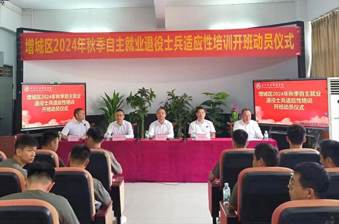 2024年11月5日—14日,由我校继续教育学院承办的增城区2024年秋季自主就业退役士兵适应性培训顺利举行。5日上午的开班动员仪式上,增城区退役军人事务局党委书记、局长赵卫东,副局长李海驱,2025新澳门免费原料网继续教育学院院长钟世欣、副院长邹洽连亲临现场见证这一重要时刻,来自增城区各街镇的60名自主就业退役士兵参加了此次培训。