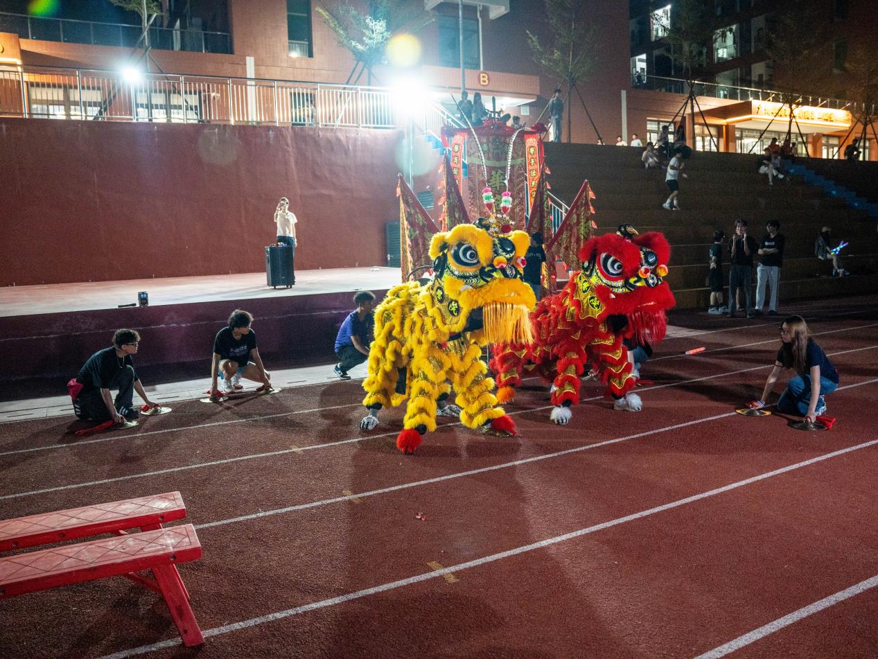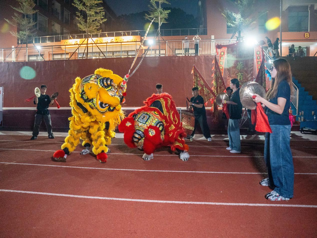 随着激昂的锣鼓声响起,活动在学生们精彩的醒狮表演中正式开始。醒狮频繁地与参赛队伍进行互动,观看的师生们纷纷鼓掌喝彩。