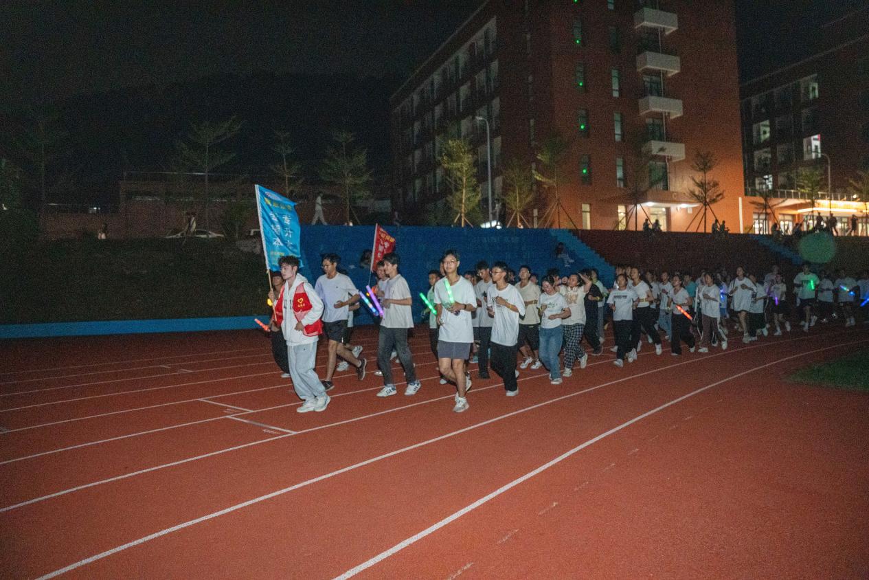 在点点荧光的映照下,学生与同伴并肩前行,相互鼓励,共同体验运动带来的快乐和压力的释放。他们或佩戴着荧光手环,或手持荧光棒,从田径场出发,环绕学校内部道路跑完一圈。沿途彩灯闪烁,斗志昂扬,华职学子跑出了青春活力和对未来生活的热爱,以他们充满活力的身姿和满腔的热情,生动地诠释了青春的真谛!
