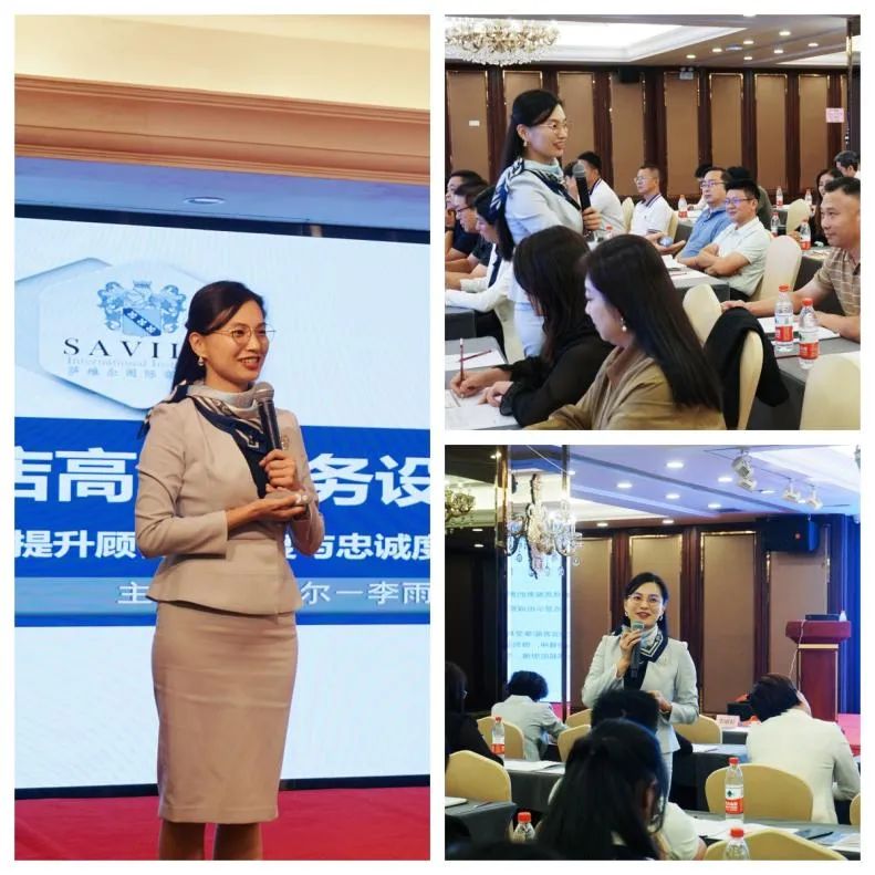 培训活动邀请了酒店业运营导师,企业培训师,萨维尔集团高层、国际商学院讲师,中国人力资源管理师(高级),美国ACI职业培训师CHA认证总经理,中国绿色饭店星评员(国家级)李雨轩老师进行授课,为大家深入解析酒店高效服务设计技巧,传授顾客满意度与忠诚度的秘籍,给各高管人员提供了一个广泛交流、深化认识的交流平台。课程从酒店服务概述与服务体系构建、酒店高效服务设计之服务技巧、提升顾客满意度与忠诚度的秘诀这三大板块为培训人员分享丰富的专业知识和酒店管理经验。