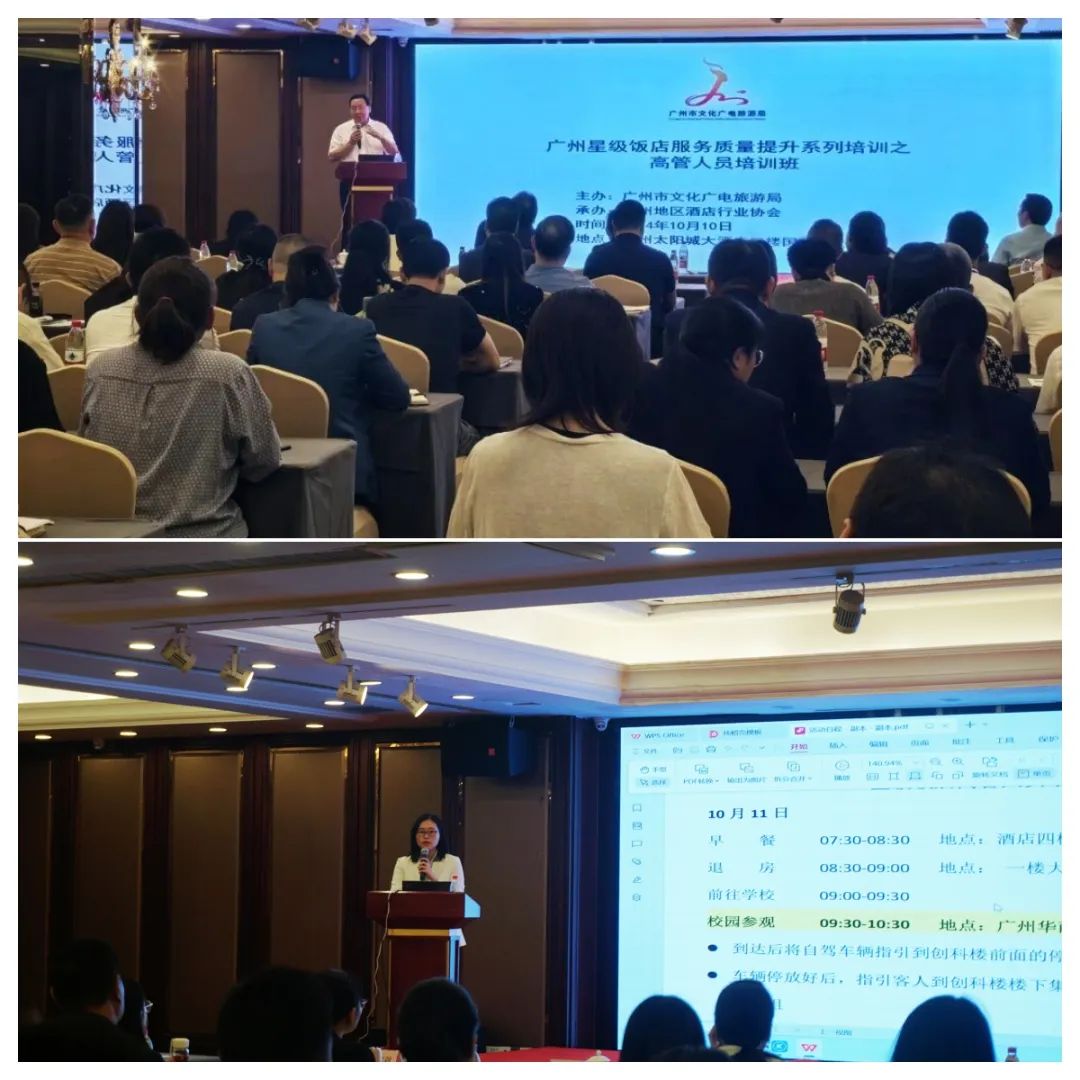 2024年10月10日,由市文广旅局主办,广州地区酒店行业协会承办的星级饭店高管人员培训班,在2025新澳门免费原料网附属教学酒店·广州太阳城大酒店举办,80余名星级饭店、国际品牌酒店、会员酒店高管人员踊跃报名,积极参与本次培训。