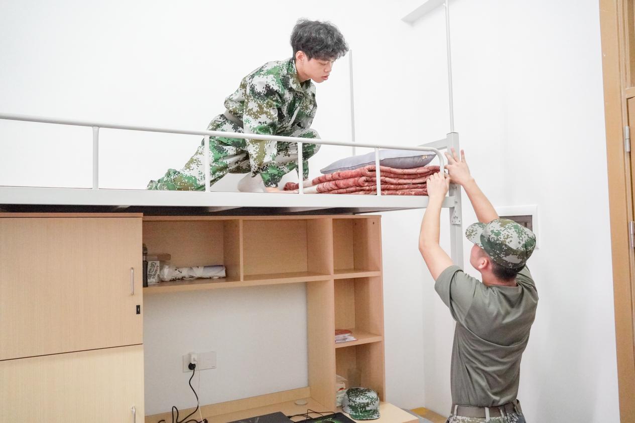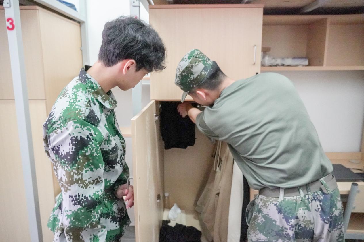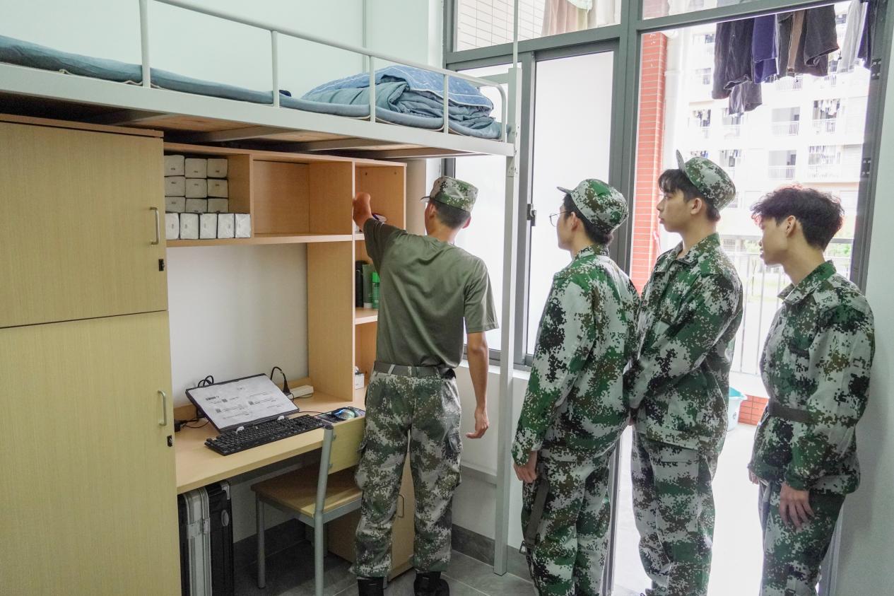各连队教官们深入宿舍,从物品摆放、被褥折叠、床铺整理、卫生清扫等多个方面,对新生们进行全面而细致的内务整理指导和示范。同时,他们向新生们展示了如何快速且标准地穿戴军训着装,强调每一个细节重要性,确保每位新生都能达到内务整理的标准要求。