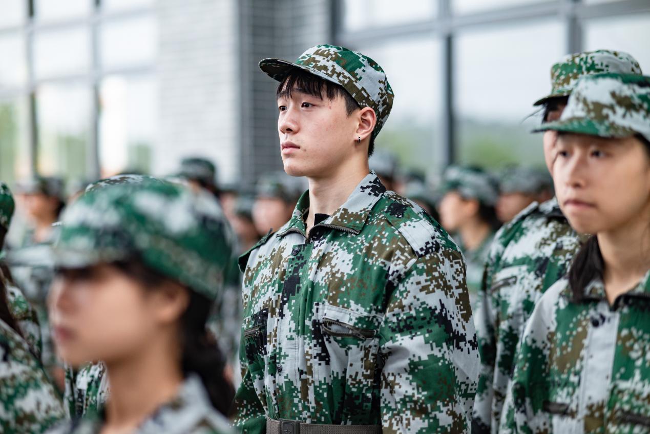 “准备军姿,稍息,立正,向右看齐!”在营长铿锵有力的口令下,各连队新生立刻做出响应。调整姿态、整理军容。横成线,竖成列,新生方队整齐划一,动作协调一致,目光坚毅地注视前方。强纪律,促作风,军训首训,新生们快速融入军训氛围,自觉接受身体的锻炼和精神的洗礼。
