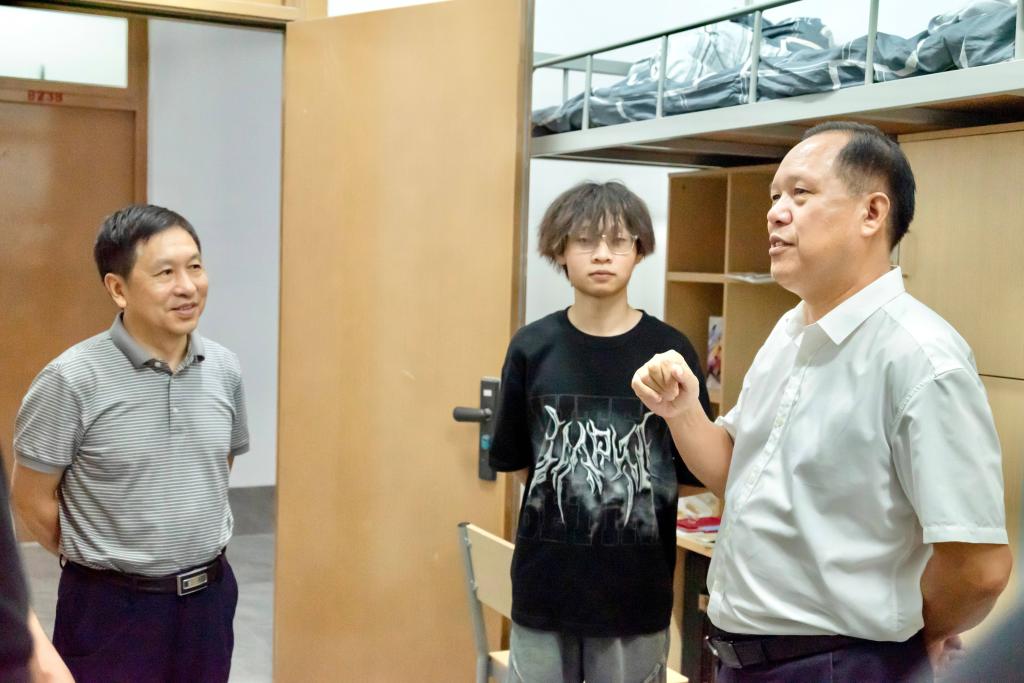 学校领导带着满满的关怀与期望,走进了新生宿舍楼。每到一处,校领导都仔细查看宿舍环境,询问学生们对住宿条件的满意度,以及初入校园的适应情况。他们亲切地与新生交谈,倾听新生们的心声,从学习规划到生活琐事,无一不体现出校领导对新生的细致关怀和殷切期望。