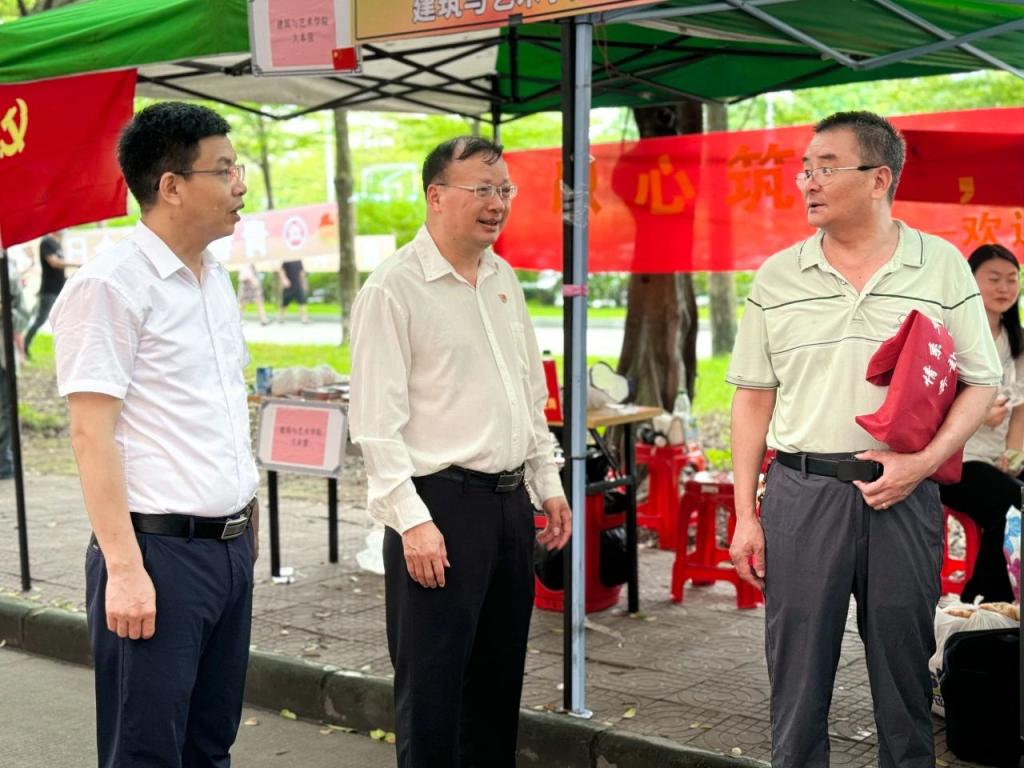 学校领导来到新生报到现场热情迎接2024级新生,诚挚慰问迎新工作人员,了解各学院、各部门工作情况,与新生及家长亲切交流,勉励新生们尽快融入新环境,珍惜在华职的三年时光,在努力奋斗中谱写青春华章。
