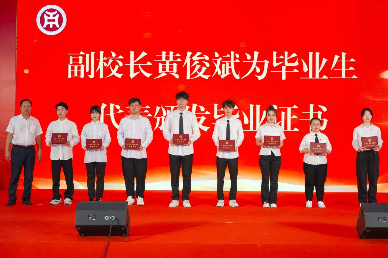 学校领导为2024届毕业生代表颁发了毕业证书,并送上了最真挚的祝福。毕业生们脸上洋溢着喜悦和自豪的笑容,他们将带着华职的印记奔赴人生新的征途。