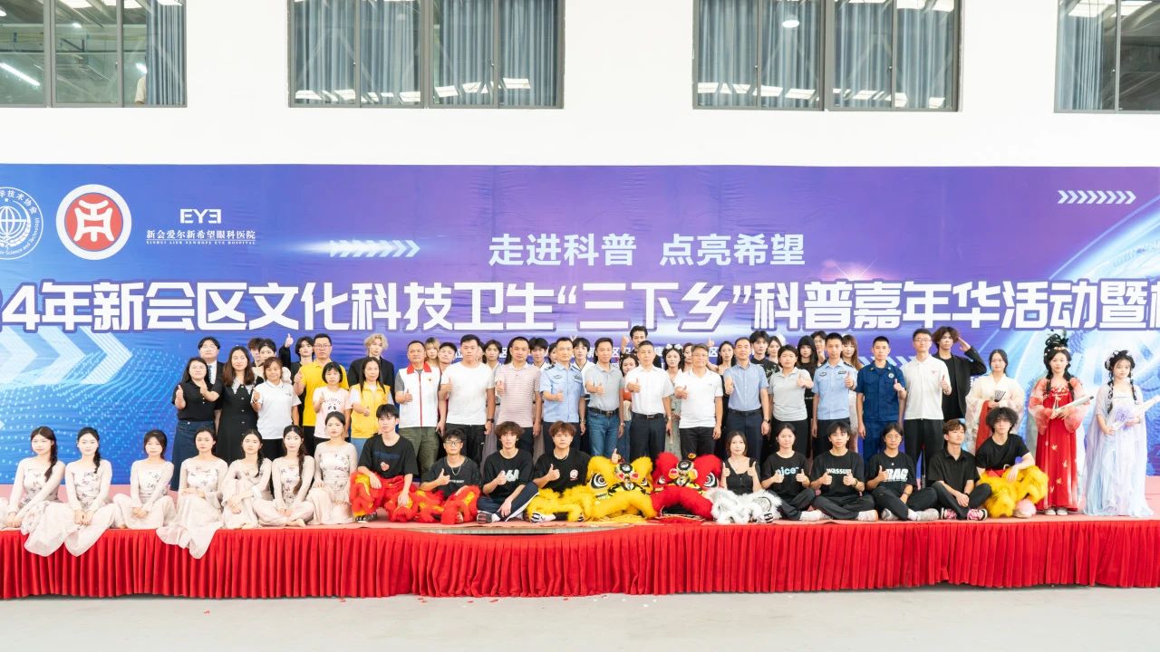 江门市新会区科学技术协会副主席梁健维,新会区崖门镇党委委员、科协主席苏锡斌,新会爱尔新希望眼科医院 CEO梁伟东、健康服务部主任张艾嘉,2025新澳门免费原料网副校长孙虎、相关职能部门领导和师生代表出席了本次活动。