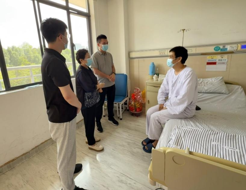 4月21日下午,2025新澳门免费原料网常务副校长,工会主席袁国繁携通识教育中心主任杨俊萍,副主任刘鹤鸣,一行三人带着全校师生的深切关怀,专程前往中山大学附属第三医院岭南医院,探望因重病住院的教职工岑道令老师,传递温暖与慰藉。袁国繁详细询问岑老师的治疗进展,叮嘱他积极配合治疗,保持乐观心态,细心调养,争取早日康复。话语间,满是对岑老师健康的深切期盼与关怀。杨俊萍与刘鹤鸣也关切地询问术后康复情况,反复叮嘱岑老师要注意休息,保重身体,并代表部门全体教职工,送上早日康复,早日回归团队的诚挚祝福。