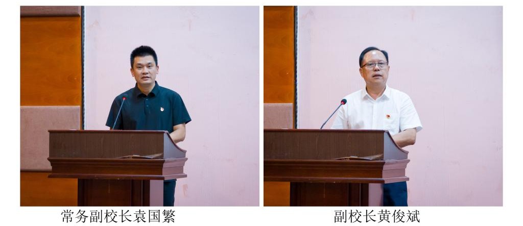 校长卢坤建作总结讲话。他立足学校发展全局,深刻分析了当前职业教育面临的机遇与挑战,他指出,职业教育的生命力根植于产业土壤,唯有紧密围绕产业动态调整办学方向,才能突破传统教育模式的桎梏。尤其在当前全球化背景下,学校依托粤港澳大湾区的区位优势,凭借国际化办学的硬件设施与政策红利,在省内高职院校中形成了鲜明的差异化竞争力。面向世界的办学视野不仅体现在与国际教育资源的深度对接上,更转化为打造特色教育品牌的战略选择——通过开拓澳大利亚、新加坡等多元合作平台,逐步形成具有国际影响力的职教标杆。在这一框架下,“聚焦岗位”的办学策略被赋予新的时代内涵:面对人工智能催生的新兴职业形态,学校决定成立职业教育研究院,通过校企联合调研重构课程体系,确保人才培养与产业前沿需求同频共振。