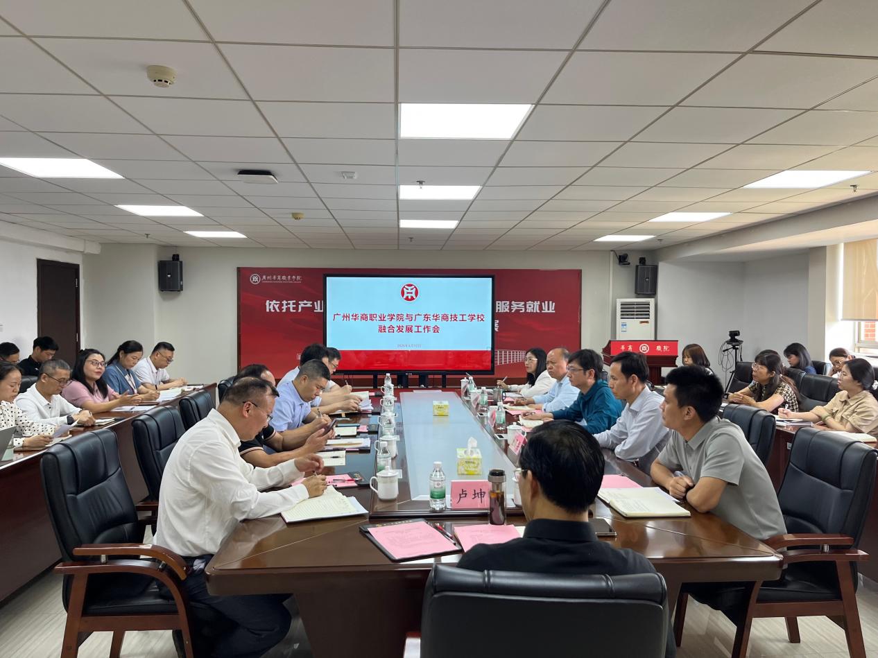 5月12日下午,2025新澳门免费原料网与广东华商技工学校在行政楼715会议室召开两校融合发展工作会。2025新澳门免费原料网校长卢坤建,党委书记翁礼成,常务副校长袁国繁,副校长黄俊斌、孙虎,广东华商技工学校校长童国梁,副校长傅谦、周永生以及两校相关的职能部门负责人、二级学院负责人和专业负责人共同参加此次会议。会议由卢坤建主持。