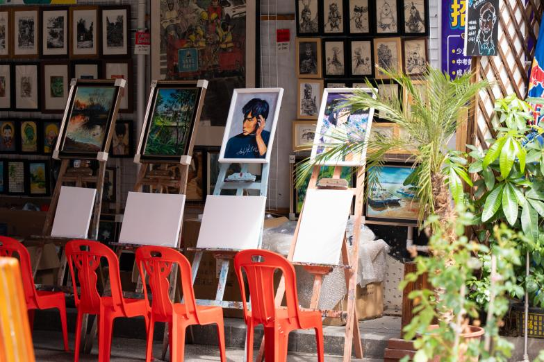 深圳大芬油画村被誉为“中国油画第一村”,村内共有大小画廊及门店1200余家,知名企业60多家,聚集油画从业人员约8000人,同学们漫步其中,被满街的艺术和创意设计作品所震撼,对艺术产业化发展有了直观认识。