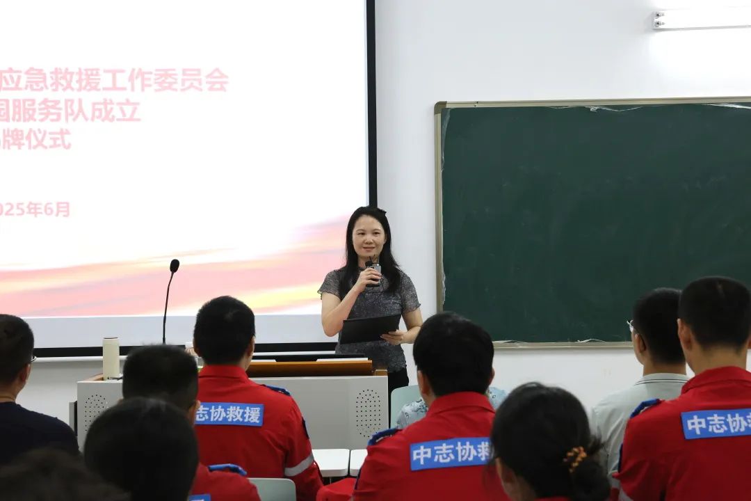 随后,广东直属服务队队长吴良兵致辞,他对服务队的成立给予高度肯定,他强调校园应急救援在保障师生安全、提升校园应急能力中具有重要意义,并鼓励队员们要秉持专业精神,以饱满的热情投入应急救援工作。