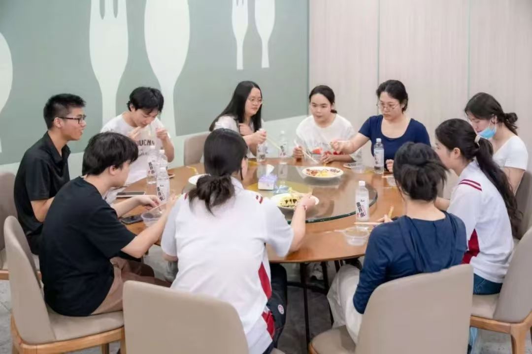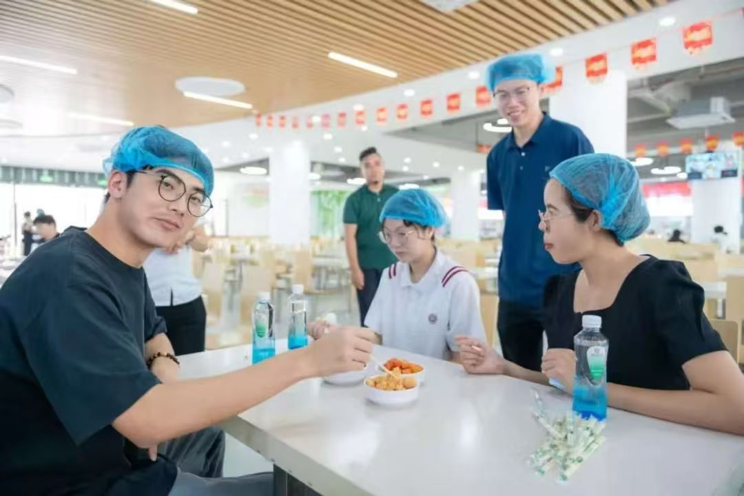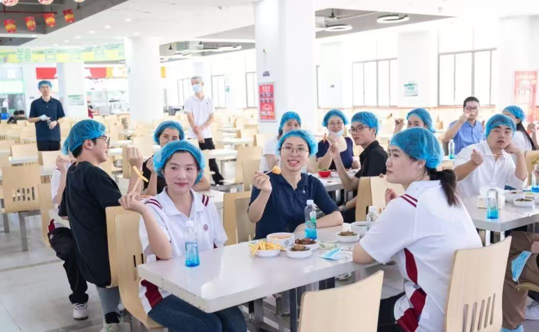 活动尾声,副校长黄俊斌率队开展“领导陪餐”行动,与学生同桌就餐并亲切交流,详细记录关于餐品搭配、服务态度等具体反馈。他强调,陪餐制度既是落实食品安全责任的关键环节,更是倾听学生心声、改进管理服务的有效途径,学校将以“时时放心不下”的责任感,持续筑牢从田间到餐桌的全链条安全屏障。