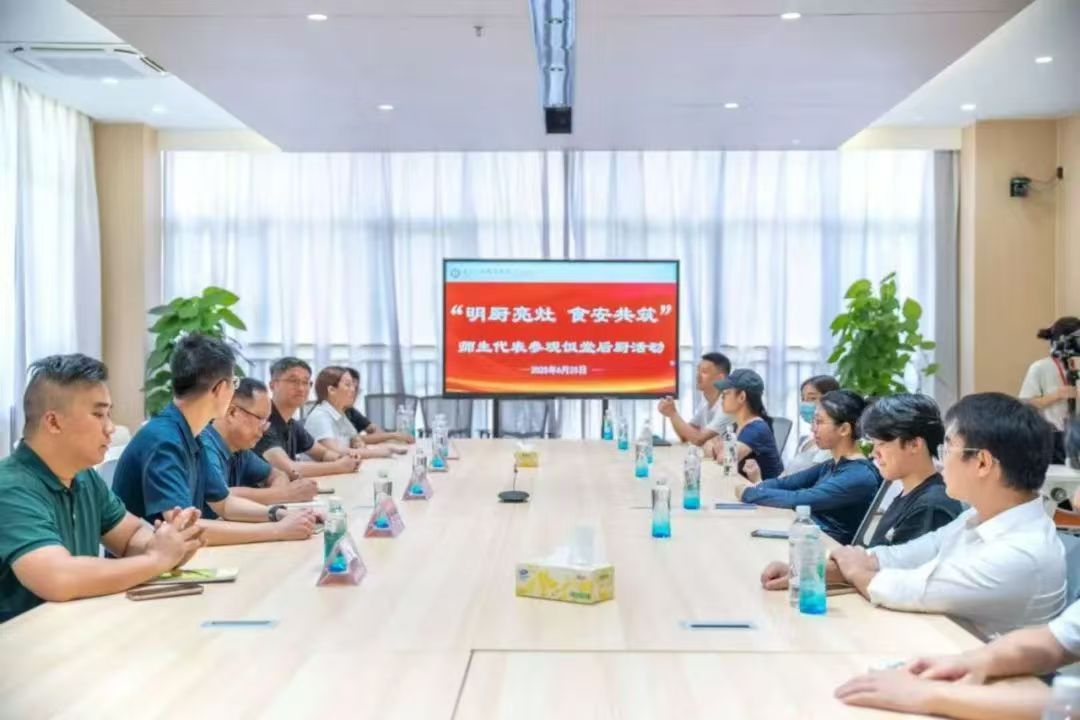 来自各教学单位的20余名师生代表在严格遵守卫生规范后,深入校区第一、第二食堂后厨核心区域。
