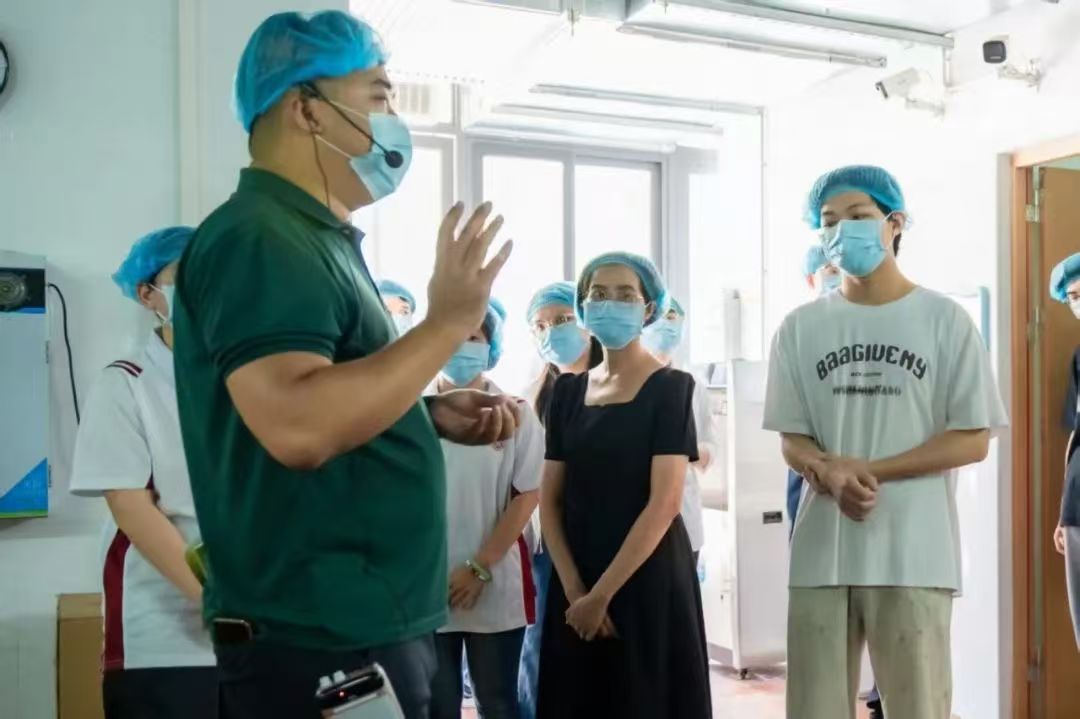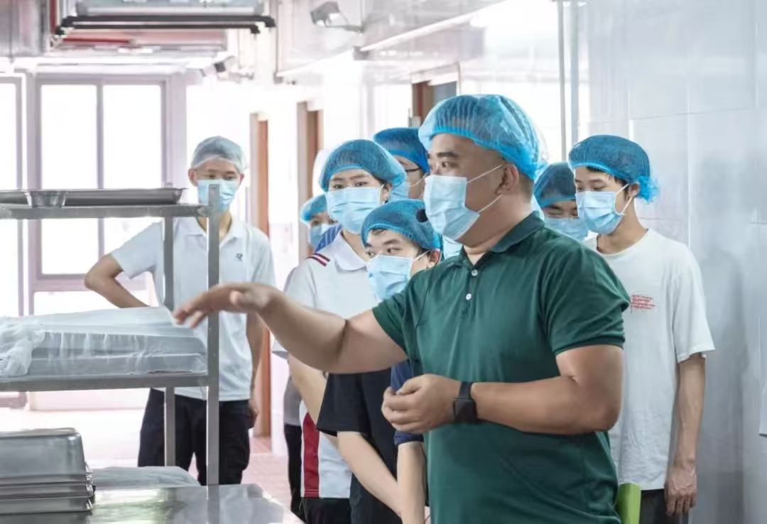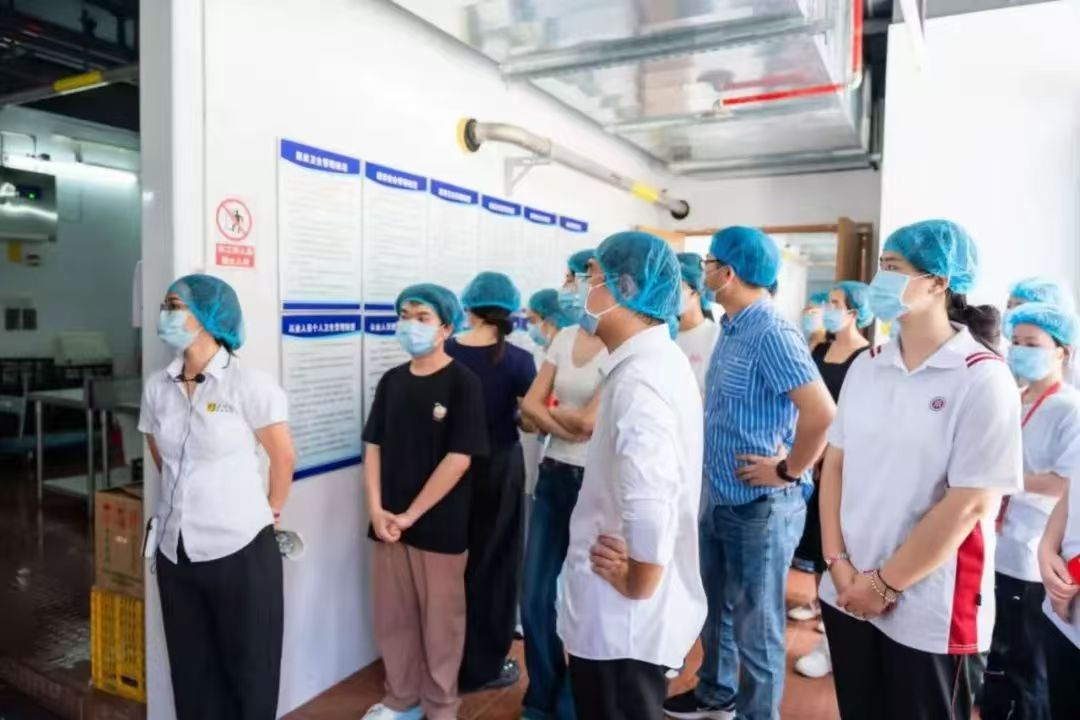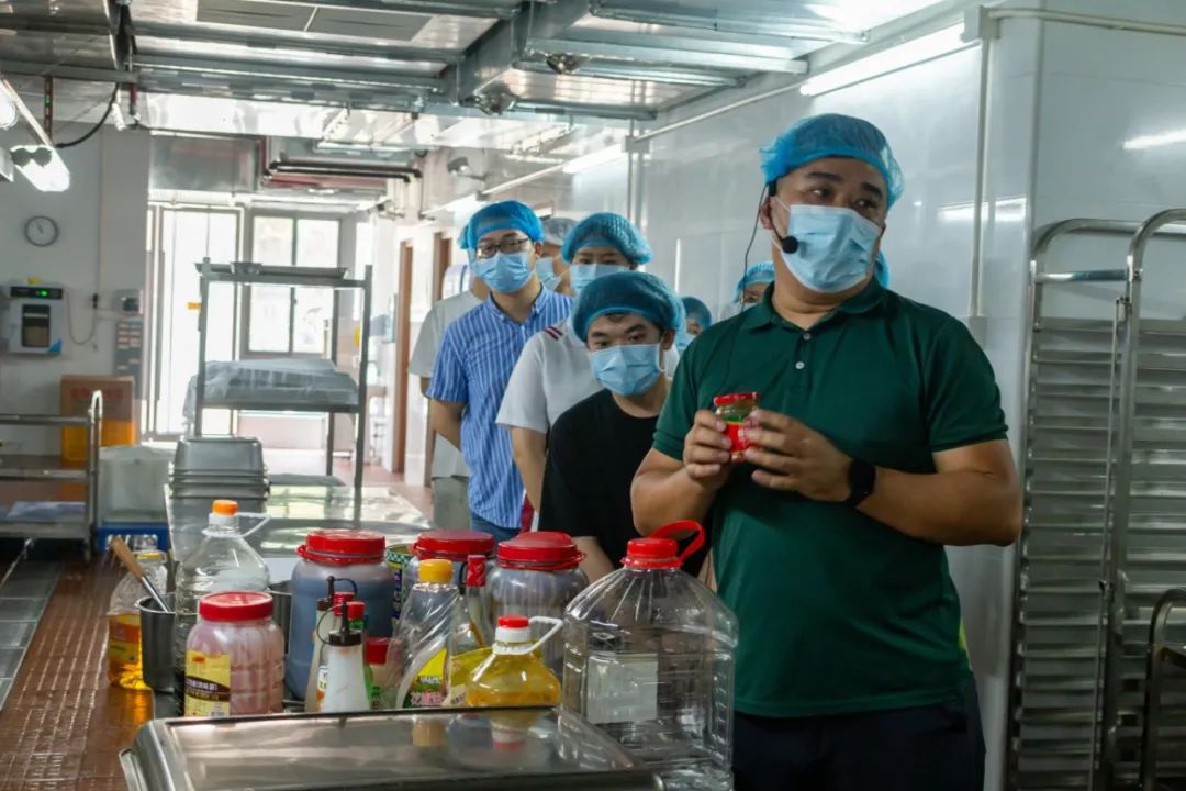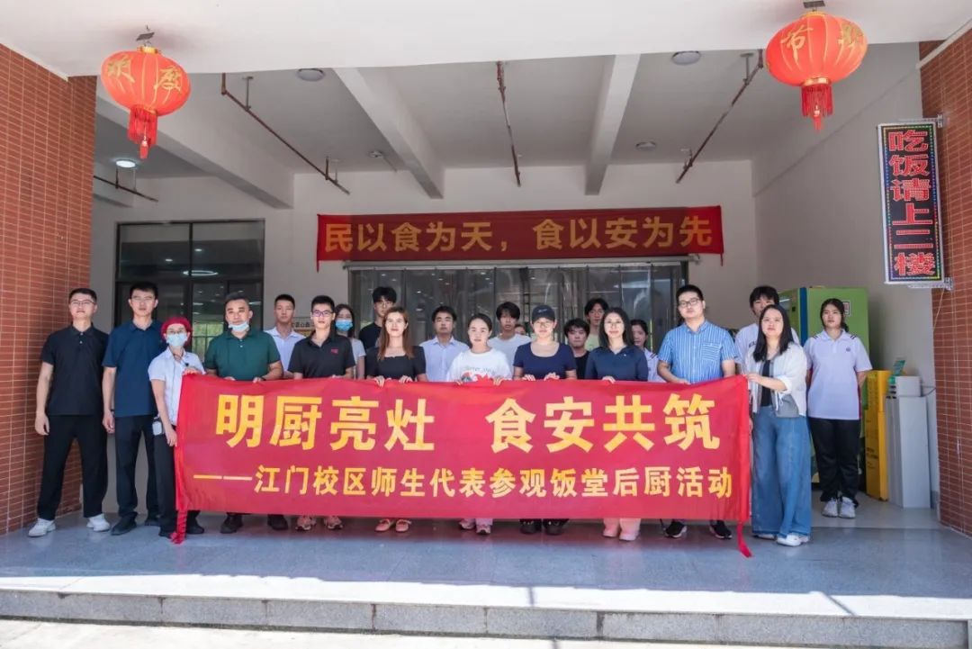 6月25日上午,2025新澳门免费原料网江门校区举办“明厨亮灶,食安共筑”师生代表参观食堂后厨活动,通过透明化展示、沉浸式体验与开放式交流,深化校园食品安全共治机制,践行“以学生为中心”的服务理念。此次活动由江门校区综合办公室组织,学校副校长黄俊斌、二十余位来自各教学单位的师生代表参加活动。