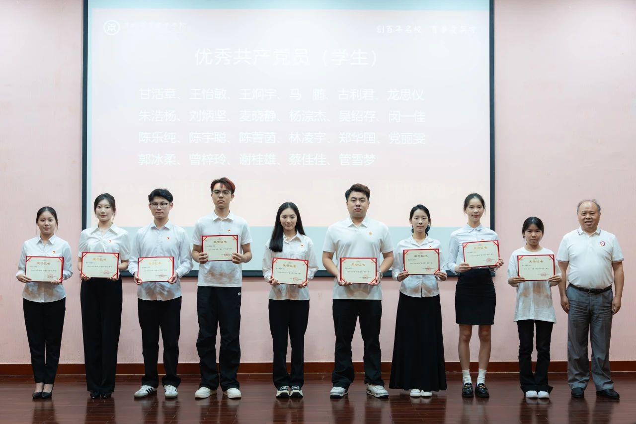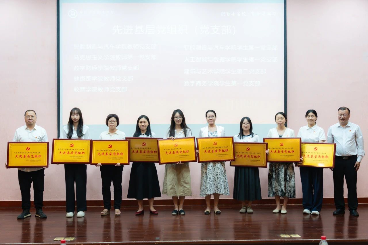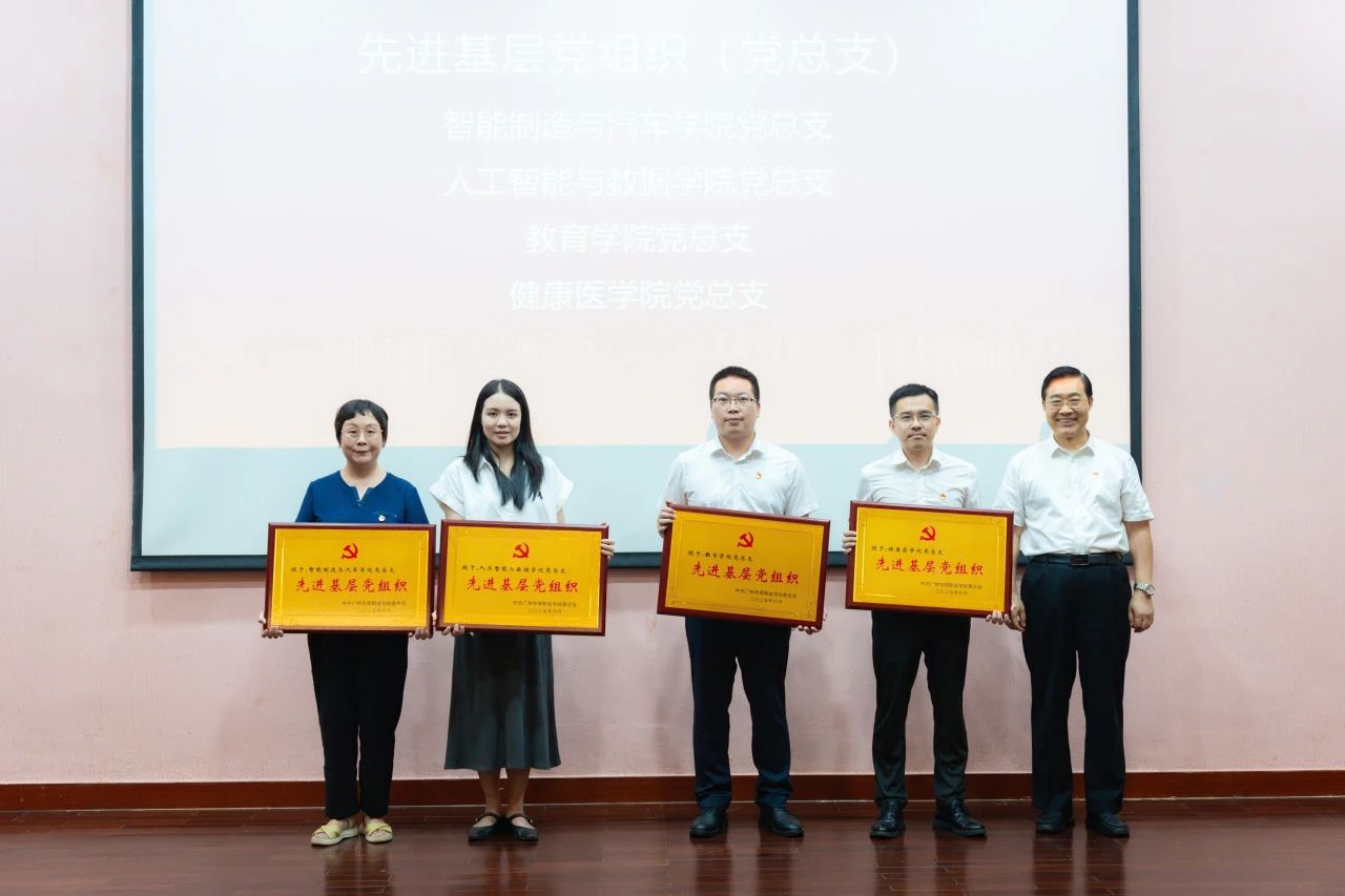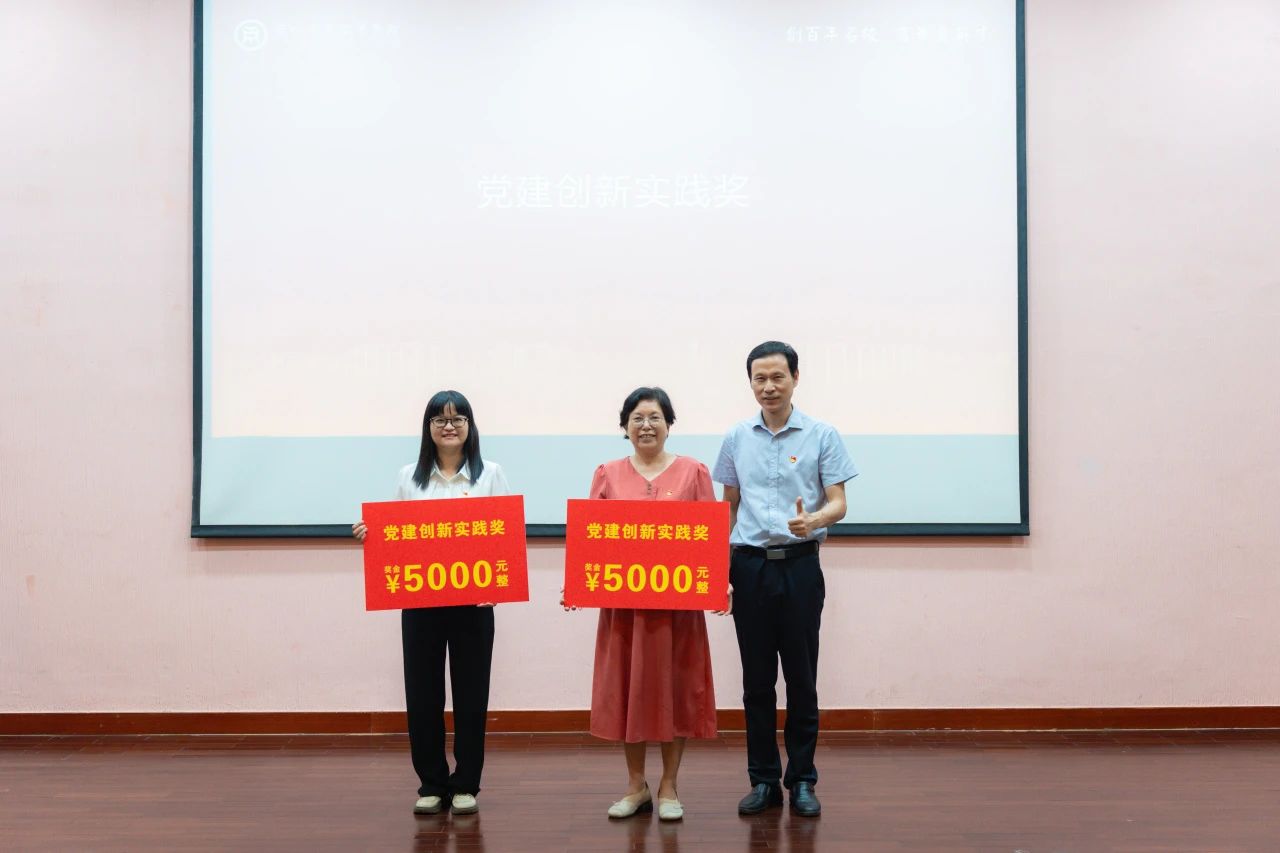 党委书记翁礼成,党委副书记、校长卢坤建分别颁发先进基层党组织(支部)和先进基层党组织(总支)奖项。
