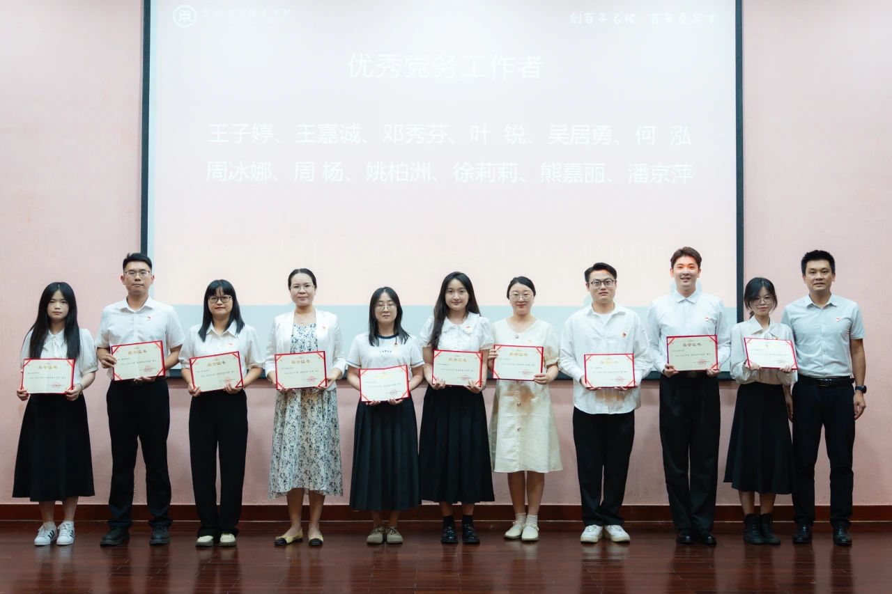 学校党委副书记、常务副校长袁国繁宣读《中共2025新澳门免费原料网委员会关于表彰2025年度先进基层党组织、优秀共产党员和优秀党务工作者的决定》。与会领导为受表彰的先进集体和个人颁发证书。
