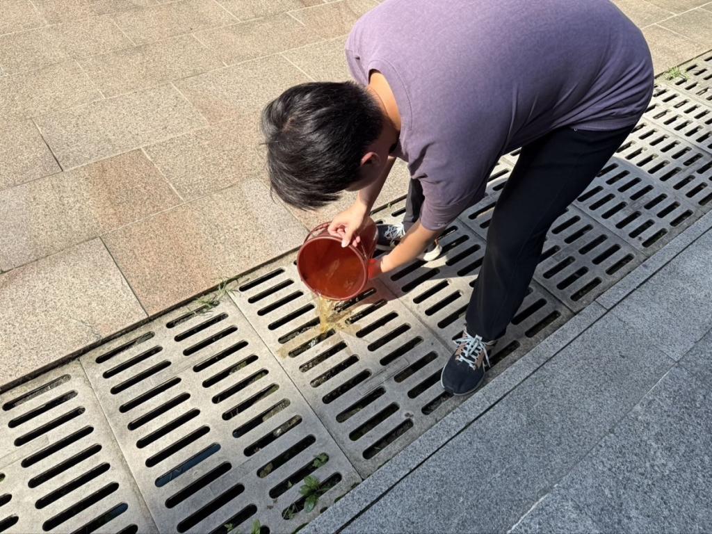 值班人员严格按照 “清积水、清垃圾、清杂物” 标准,对蚊媒孳生区域进行全方位细致清理工作,不放过任何卫生死角。大家分工协作、有条不紊,用汗水织密防疫安全网,为新学期校园安全筑牢坚实屏障。