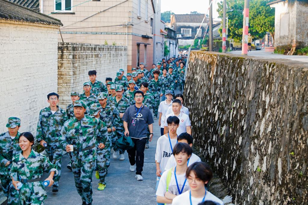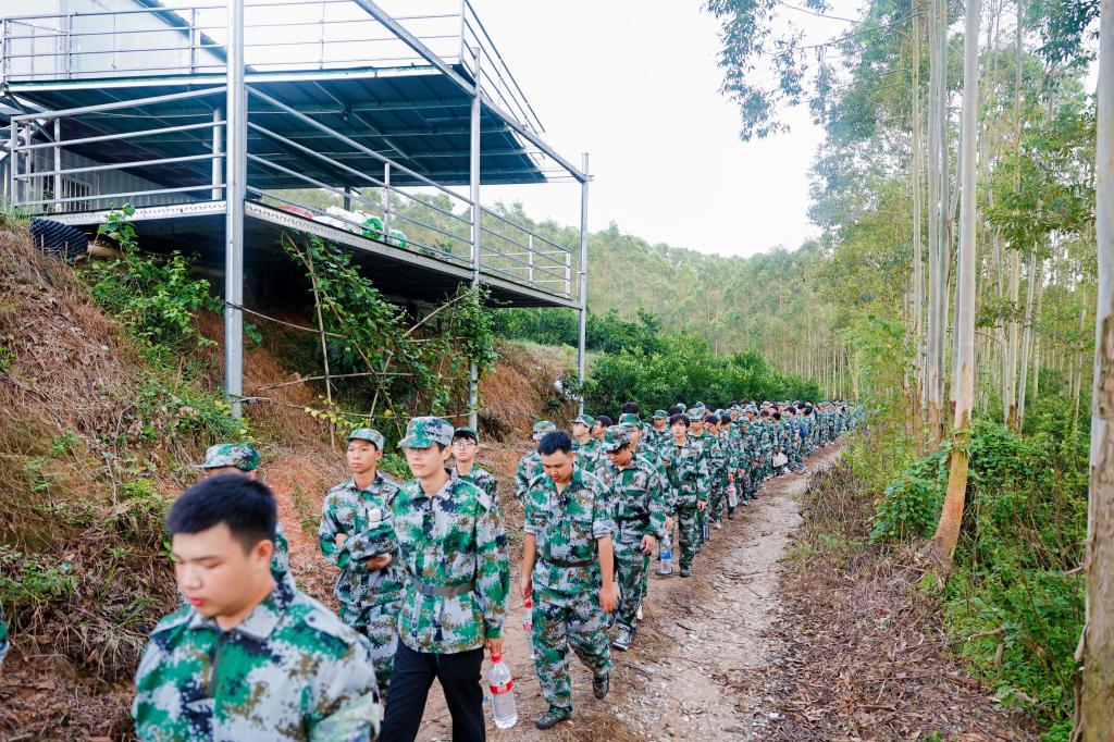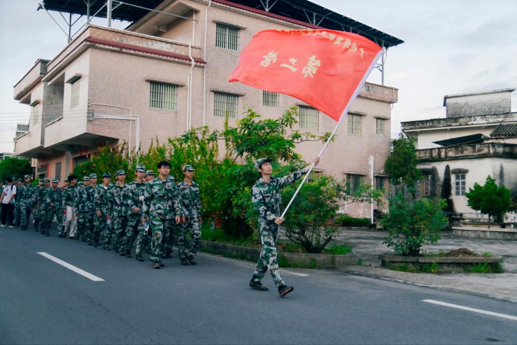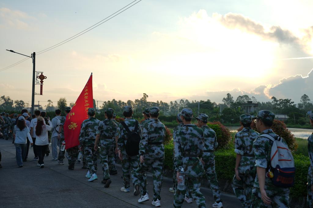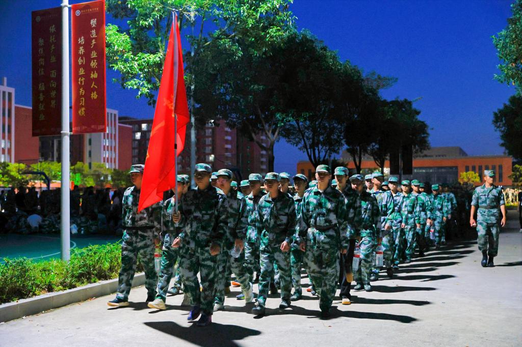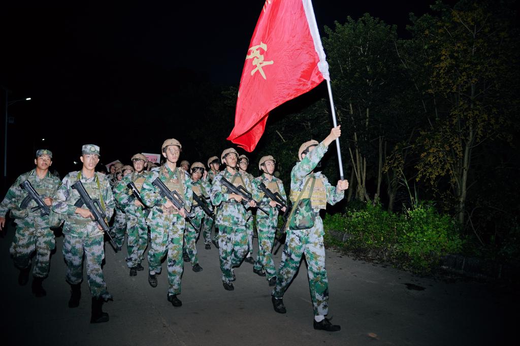 田径场上,5个营队依次完成集结汇报,新生们衣装笔挺地站成队列,蓄势待发。“出发!”副校长孙虎一声令下,嘹亮的行军歌声划破寂静的黑夜,队伍被歌声点燃,军心激荡,士气如虹,昂首阔步,有序前进。