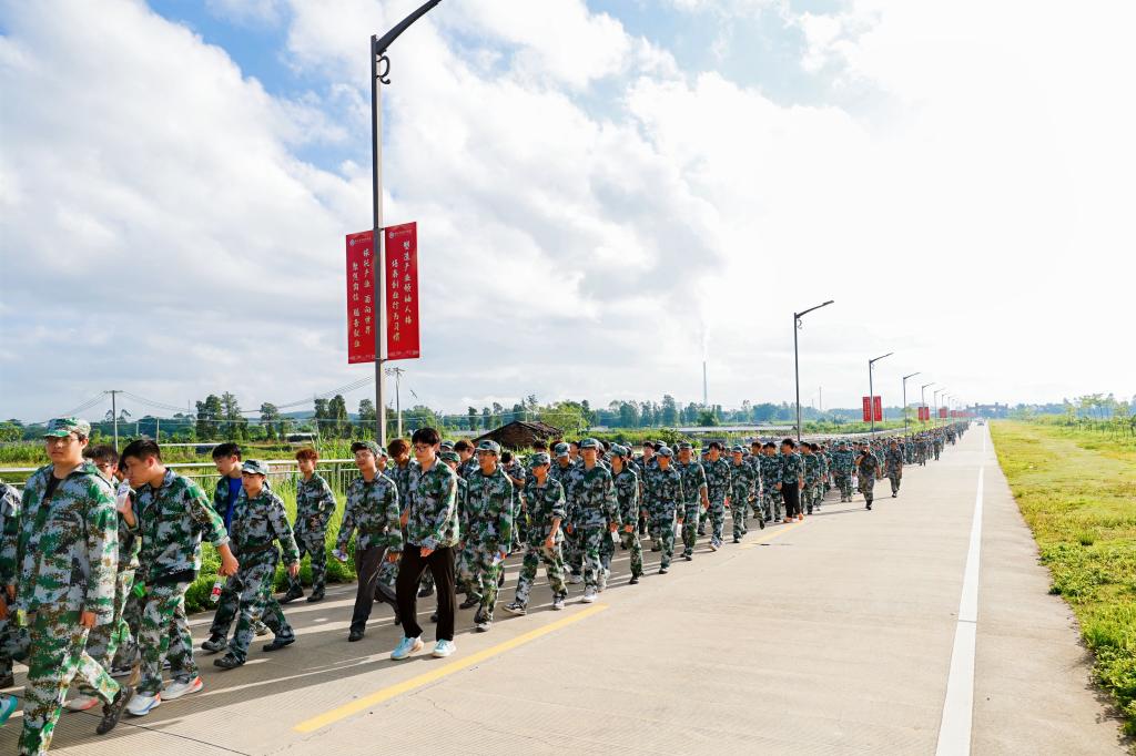 拉练队伍沿着洒满晨光的乡道前行,穿越崎岖山路,途经省道,穿过学校牌坊,凯旋而归。一路走来,队员们越走心中越炽热,越走情谊越深厚。这场历时三个多小时的拉练,新生们经受了体能的考验,淬炼了意志,更加坚定了青春的信念与前行的方向。