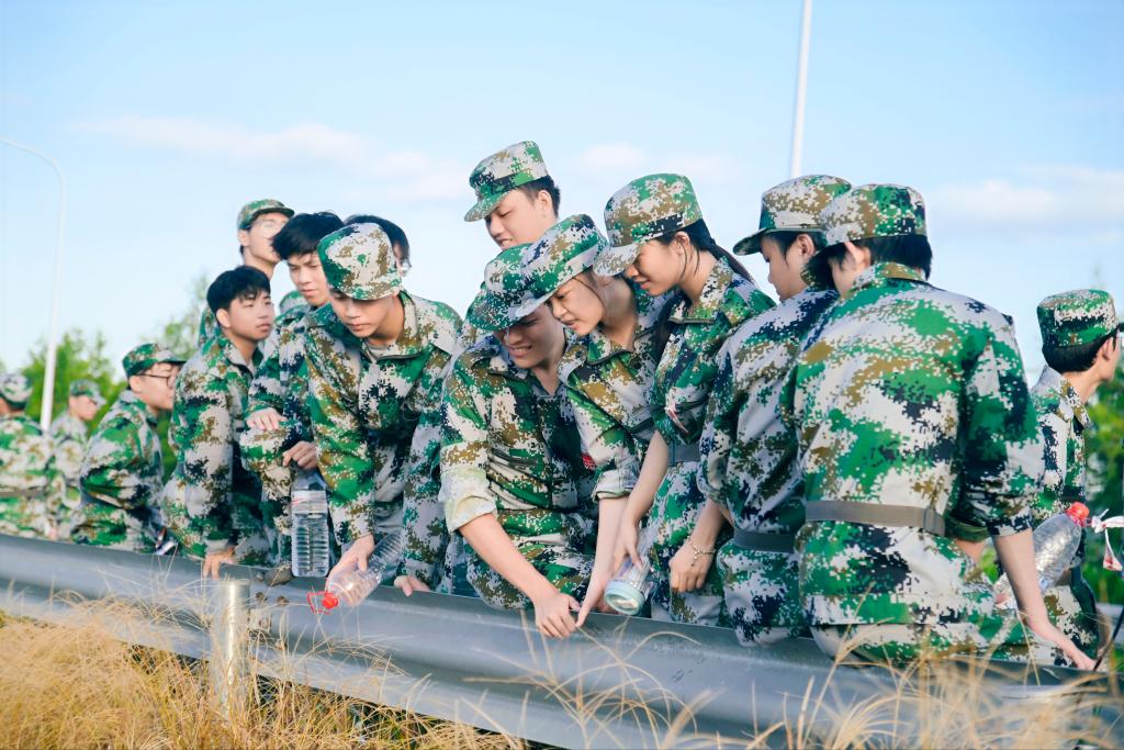 拉练途中,学校专门在沿途设置了两个补给服务点,教官、辅导员、班助及医疗后勤人员全程相伴。