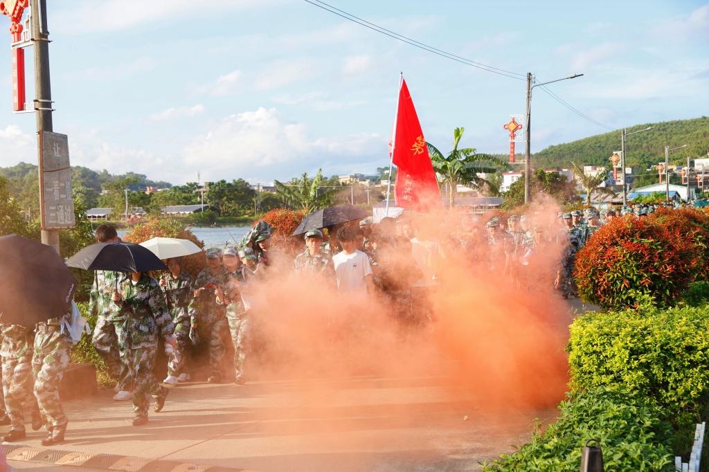 行军途中,队员们相互鼓舞,相互帮扶,汗水浸湿了迷彩服,但没有一人掉队。短暂的休整时,营队中洋溢着欢愉的气氛,行军的疲劳也在欢声笑语中悄然消散。