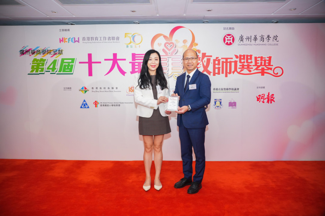 在本次典礼中,来自香港中小学、幼稚园、特殊学校及大专院校的十位优秀教师获颁殊荣。我校袁国繁常务副校长作为主礼嘉宾,为获奖教师颁授奖项,向坚守育人一线的教育工作者致以崇高敬意。十位获奖教师依次上台发表获奖感言,并分享其在教学一线的心路历程与育人点滴,场面温馨感人。
