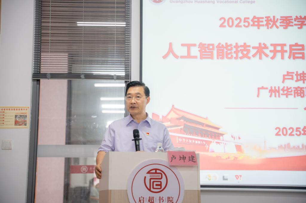 根据《广东省教育厅关于做好2025年秋季学期大中小学校党组织书记、校长上第一堂思政课工作的通知》要求,10月29日,校长卢坤建教授以“人工智能开启马克思主义新境界”为题,为2025级新能源2班、3班百余名新生讲授“思政第一课”。