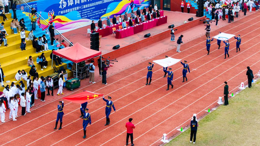 11月27日上午,运动会在庄严的国歌声中拉开序幕。国旗方阵与各学院方阵依次入场,他们步伐整齐、口号嘹亮、精神抖擞,充分展现了华商学子昂扬向上的青春风采。常务副校长袁国繁在致辞中勉励全体运动员发扬“更快、更高、更强、更团结”的奥林匹克精神,赛出风格、赛出水平。