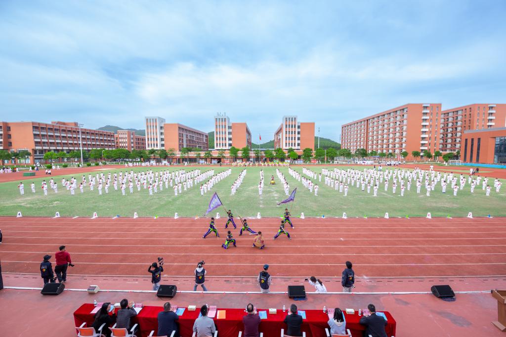 随后进行的体育项目化教学成果展演将开幕式推向高潮。刚柔并济的蔡李佛拳,展现了传统武术的深厚底蕴与力量之美;活力四射的街舞表演,跳出了青春的节奏与自由;蓝染服装秀的优雅风采,诠释了自信与从容;而最后压轴的啦啦操表演,则以整齐划一的动作、变幻丰富的队形和极具感染力的笑容,引爆全场,充分展示了体育教学与美育融合的丰硕成果,赢得了阵阵掌声。