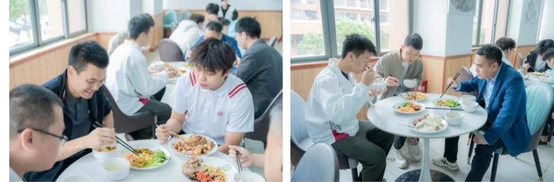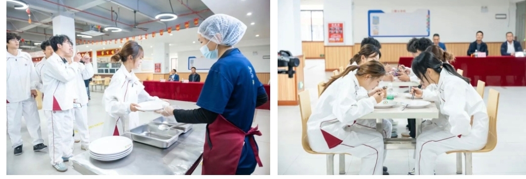 座谈结束后,活动迎来了温馨的收尾环节——“南北风味,菜肴共鉴”。校领导与师生代表一同返回第一饭堂,共同品尝饭堂近期推出的新式菜肴。