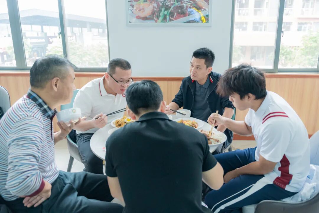 餐桌上,来自不同地域的风味菜品琳琅满目,师生们一边享用美食,一边就菜品的口味、搭配、营养等方面进行轻松愉快地交流。袁国繁与同学们相邻而坐,亲切询问大家对饭菜的满意度及日常饮食需求,现场气氛融洽热烈。此次品鉴不仅是对饭堂餐饮创新成果的一次检阅,更在轻松的氛围中进一步拉近了师生距离,体现了学校“以生为本”的服务理念。