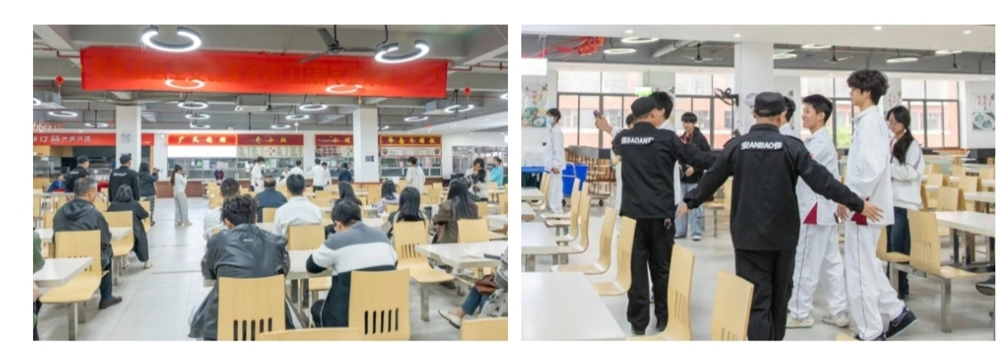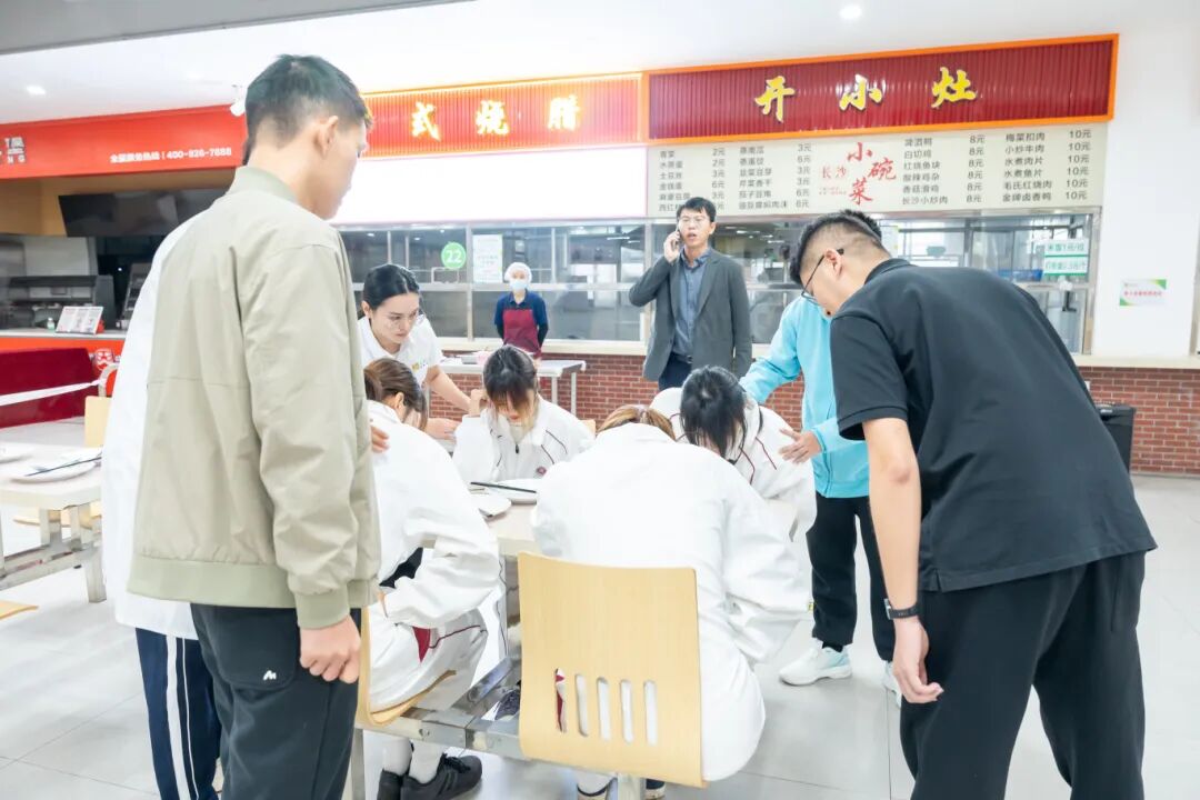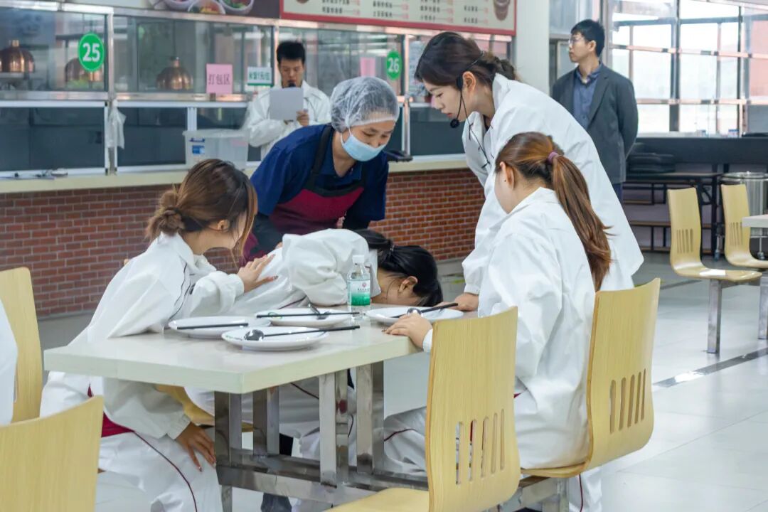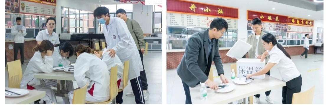 12月4日上午,活动在江门校区第一饭堂正式拉开帷幕。首个环节是一场模拟真实场景的“食品安全突发事件应急演练”。演练模拟了学生在食堂就餐后出现疑似食物中毒症状的突发情况,完整呈现了从事件发现、初步排查、信息上报、预案启动、现场管控、医疗介入到联合处置的全过程。