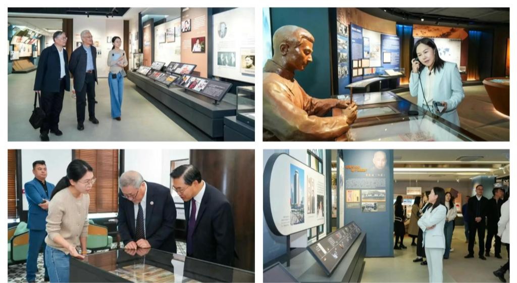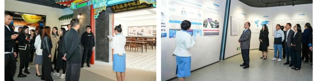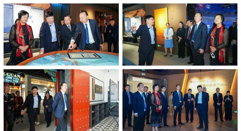 在世界华商博览馆门口,廖榕就董事长特别介绍了自己二十年前以“华商”为名创办学校的缘由。廖榕就董事长认为,“华商”不仅仅是个人、更是一个群体、一个统称。华商会议展览中心正是要突出“世界的华商,华商的世界”这一理念,将华商的精神实质与文化内涵娓娓道来。
