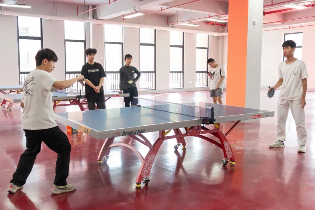 乒乓球馆配备16张标准乒乓球台,场地宽敞明亮,师生可以在这里自由切磋球技,享受运动乐趣。